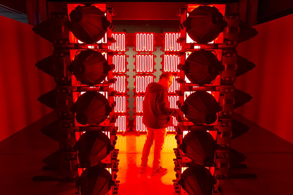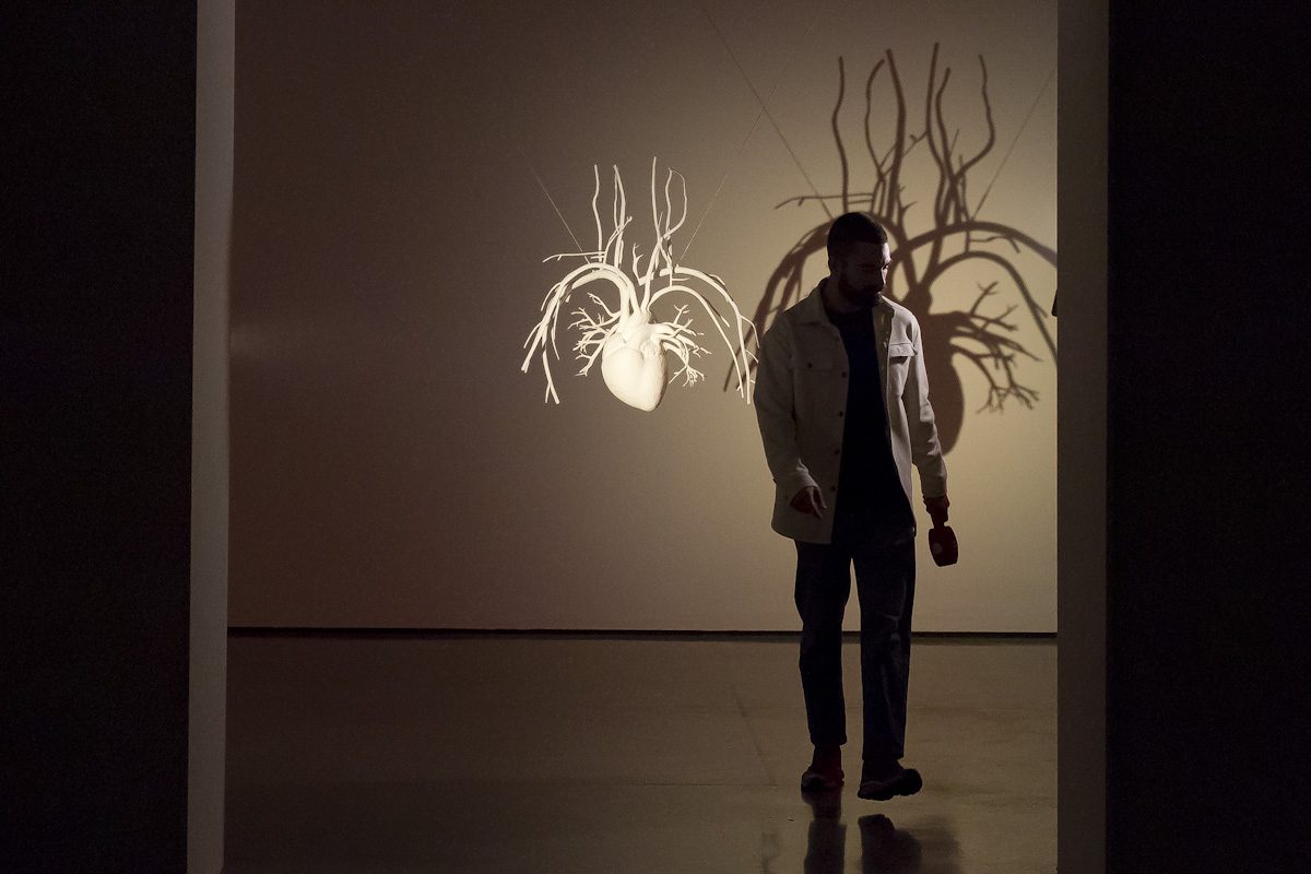 El documental ¿Puedes oírme? (2020) de Pedro Ballesteros, que profundiza en su proceso creativo, junto con una fotografía mural de su estudio y la maqueta de Iris (2024) –una pieza encargo de Telefónica que se puede ver en la sede de la compañía– dan la bienvenida a la muestra.