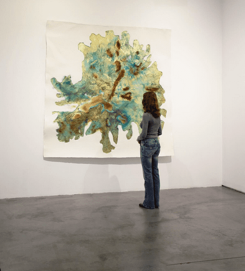 Símbolo y testigo del paso de los siglos en el Mediterráneo, la sección de este olivo representa un fragmento de historia que el artista incorpora a su obra. Utilizando una prensa que deja su impronta en obras que se convierten en huellas tangibles del tiempo, explora la relación entre el hombre y el mundo natural. Impresa, la historia del árbol encuentra otra forma de pervivir en el tiempo.
