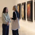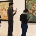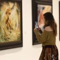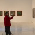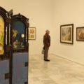 5. Feminidades. Néstor sorteó las corrientes de la época para elegir un estilo propio, pero también necesitaba satisfacer sus necesidades económicas. En las pinturas, dibujos y grabados de esta sala utiliza su dominio del cromatismo y del dibujo para representar a la mujer española ataviada con ropas tradicionales de maja o manola. En cualquier caso, no representa una feminidad cosificada, dócil ni sometida. En obras como Mantillas (1915) o El garrotín (1928) se aprecian mujeres musculadas alejadas de la pasividad. En otras, en cambio, respeta el gusto hegemónico. Las distintas feminidades que plasmó derivan de diversas aproximaciones estéticas: Señorita Acebal (1914) sigue la estela simbolista; Marquesa de Casa Maury (1931) se aproxima al art déco cosmopolita; mientras que Requiebro (1930) se identifica plenamente con el folclorismo español. Todas ellas aportan enfoques singulares y muestran una huella femenina evidente incluso en las figuras masculinas representadas.