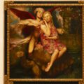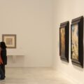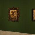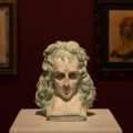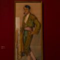 3. El círculo decadente. Néstor se mantiene alejado del naturalismo y el realismo, muy en boga en aquellos años, y ahonda en personajes ambiguos y refinados, seres etéreos y sensuales que se escapan de los cánones de la época. Es un artista reconocido. En 1911 participa en la exposición Fayans Català, una muestra que recibe alabanzas, pero también críticas, que la califican de decadente. Su arte se nutría de constantes guiños literarios e imaginarios, así como de una serie de figuras de físico andrógino como Un caballero inglés (1910) o Estampa romántica (1910-1913), que se pueden ver en esta sala tres. Probablemente su mayor audacia en este campo fue la composición Los siete vicios (1913), de trasfondo homoerótico, que acompañaba un poema de Rubén Darío. En Oriente (1912-1913) se ve a una pareja fundida en un beso sobre un fondo azul estrellado, donde la figura del turbante es, quizá, el propio artista.