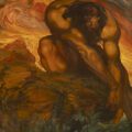 6. Mitologías sexualizadas. Para muchos artistas, la mitología permitía canalizar los deseos más incómodos para una sociedad normativa y puritana. Admirador del arte clásico, Néstor eligió al sátiro de origen griego no de forma casual. Esta divinidad campestre, caracterizada por su cornamenta, patas de macho cabrío y cuerpo masculino, está asociada a deidades como Dionisos, Pan y Príapo. La libidinosidad, un tanto impúdica, de los sátiros de Néstor está representada en la carnalidad de los labios, la mirada lasciva, la belleza tentadora de los hombros torneados o los gestos concupiscentes. Los representó a lo largo de su trayectoria, desde la juventud hasta la madurez. Por otra parte, su sátiro sigue mostrando interés por la simbología masónica. Ejemplo de ello es la imagen del que vuelve su espalda hacia el espectador y cuya mano derecha forma con los dedos una escuadra, símbolo de la conciliación entre lo espiritual y lo terrenal.