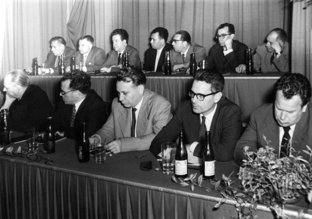 Jorge Semprún y Fernando Claudín en el Pleno del Comité Central. 1958. Archivo histórico del PCE.