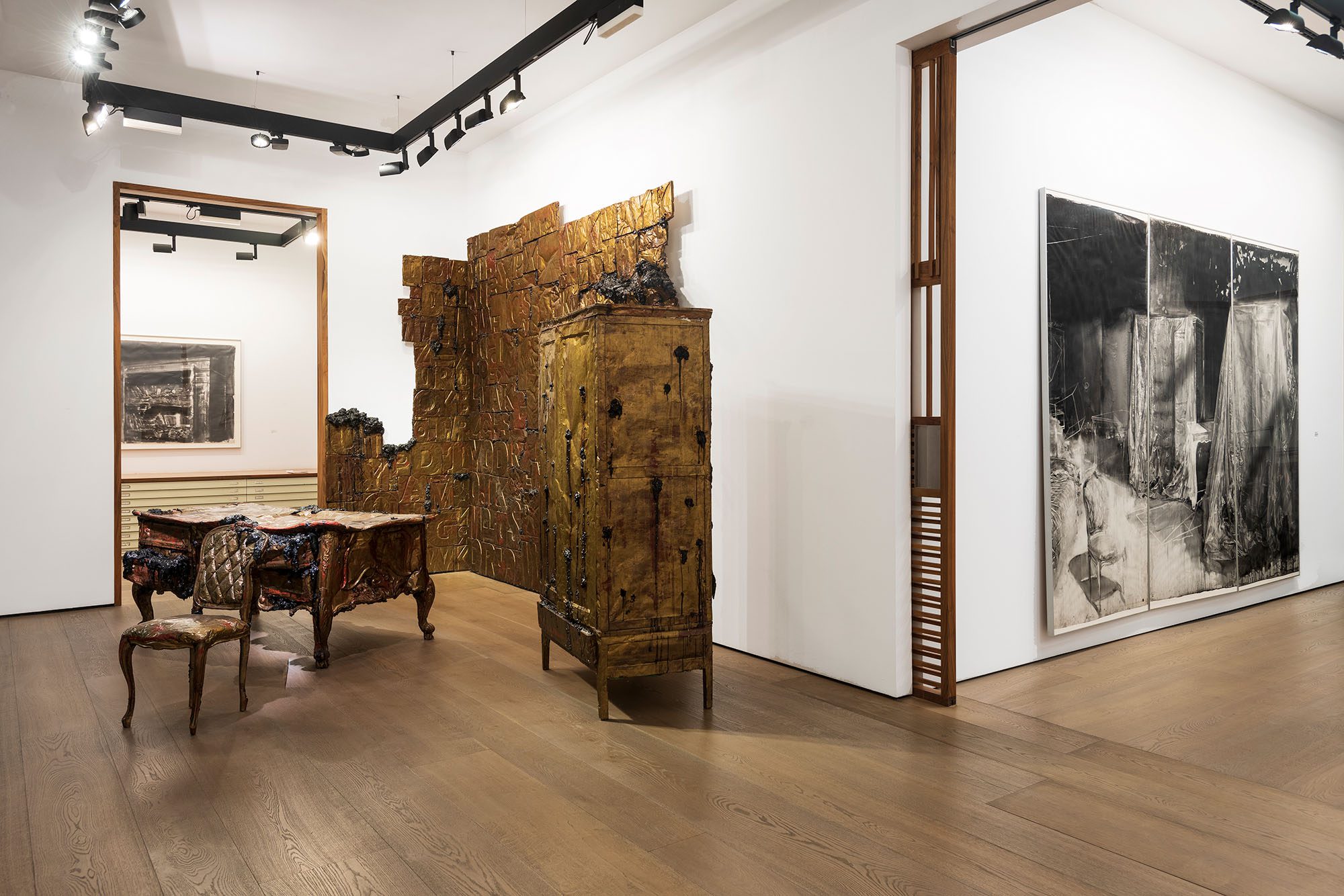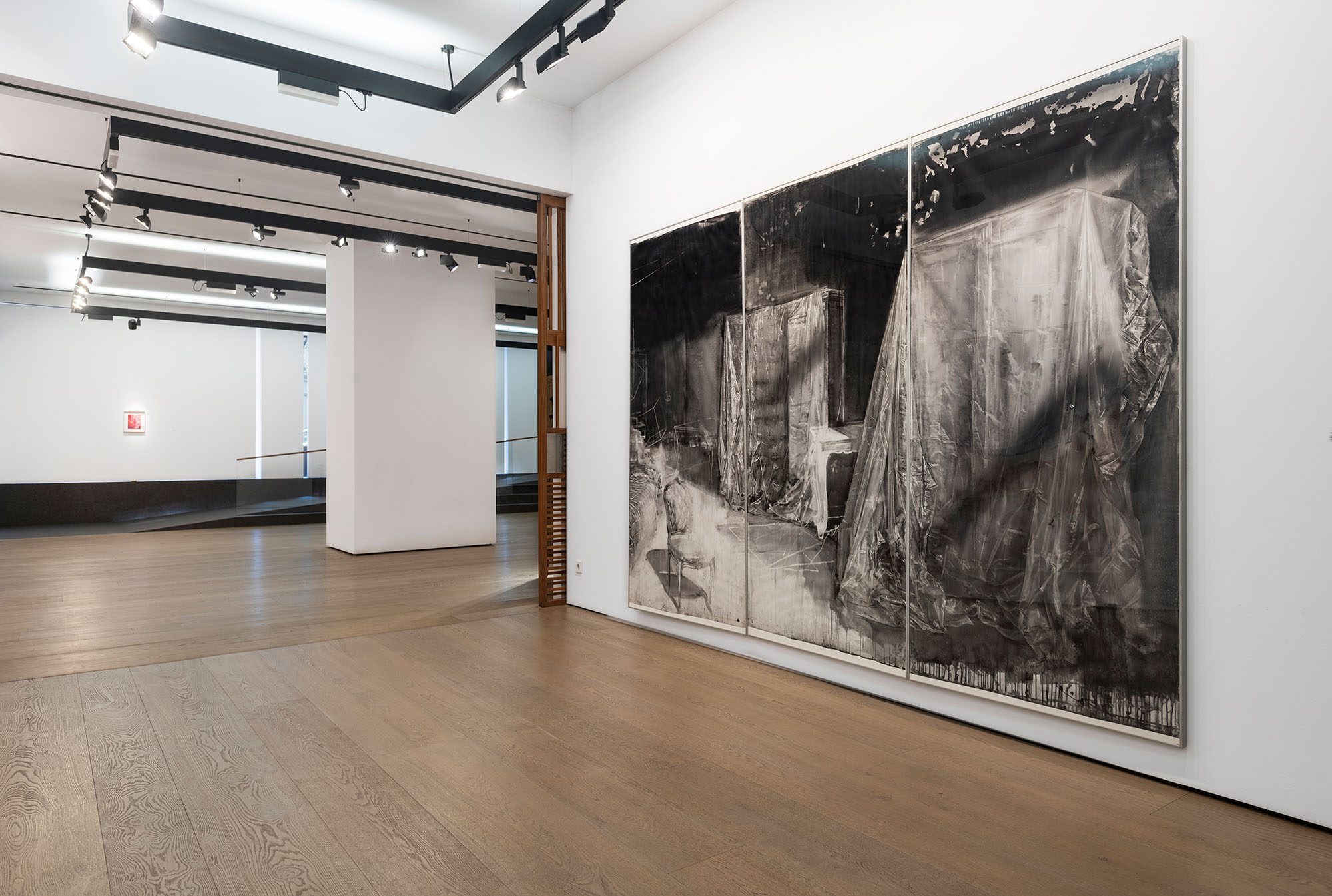 El conjunto se complementa con sus últimas pinturas, en las que el secado de los pigmentos crea campos de color fraccionados, una superficie «dañada» en la que los objetos descansan frágiles y quebradizos, tal vez como un reflejo de la fugacidad contemporánea y de la experiencia de un tiempo acelerado que deja todo atrás.