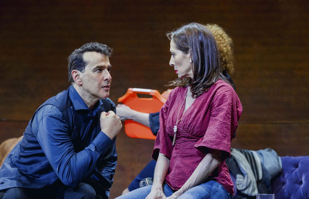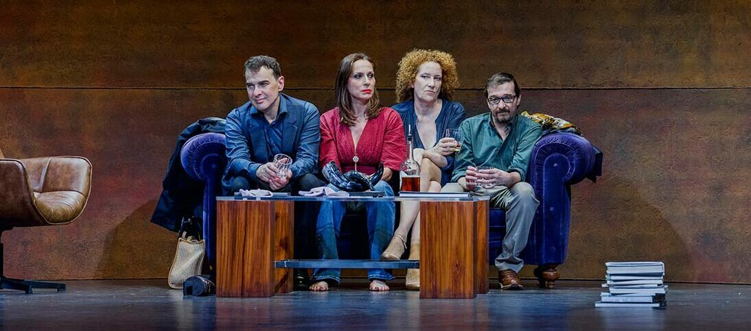 El cuarteto protagonista se entrega con energía. Merlo aporta su habitual intensidad, Natalia Millán dota a su personaje de una fuerza contradictoria muy humana, Clara Sanchis brilla por la sutileza gestual y la contención, y Juanan Lumbreras aporta un contrapunto físico y explosivo. Escenográficamente, la propuesta es sobria y eficaz: un espacio único que, a medida que la conversación se envenena, se convierte en una auténtica jaula. La iluminación y el sonido refuerzan esa progresión dramática.