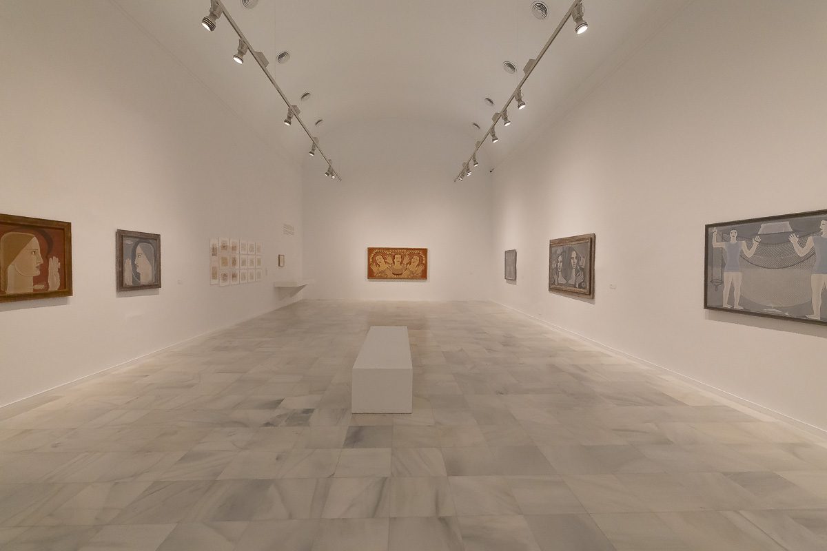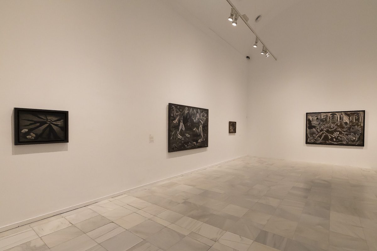 La exposición reúne un centenar de pinturas —13 pertenecientes a la colección del Reina Sofía—, cerca de setenta dibujos y más de un centenar de fotografías y documentos, muchos de ellos inéditos o procedentes del Archivo Lafuente, que se despliegan a lo largo de 11 salas del Edificio Sabatini, recorriendo toda su trayectoria vital y artística.