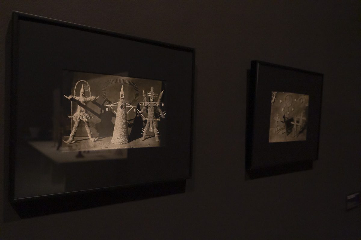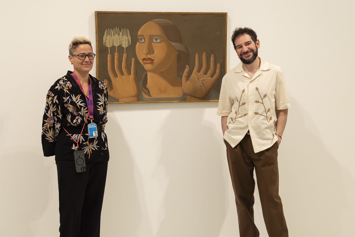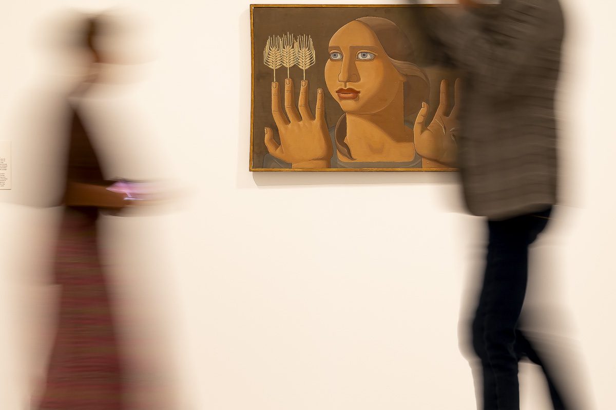 Entre las piezas más destacadas figuran las cinco Verbenas (1927—28), reunidas por primera vez desde su célebre exposición de 1928 en la Revista de Occidente, junto a obras inéditas como Arquitectura fósil I o un dibujo de 1933 recientemente localizado. También se incluyen Joven negra (1948), adquirida recientemente por el Reina Sofía, y El espantapájaros, pintura que André Breton compró a la artista en París y conservó hasta su muerte.