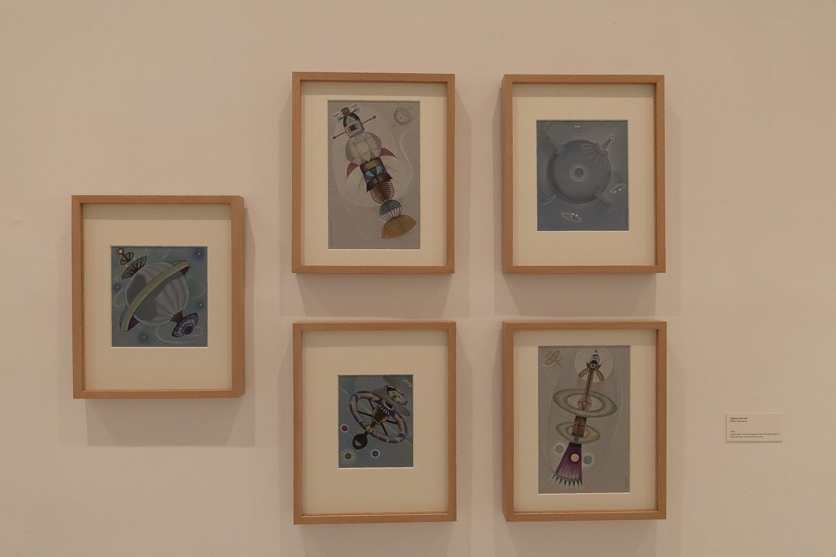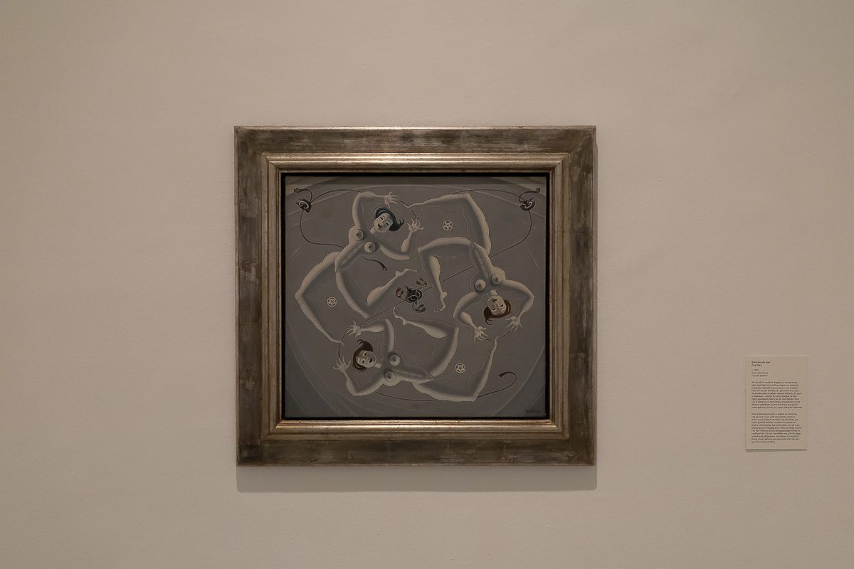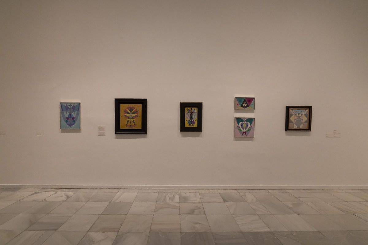 El recorrido muestra las distintas etapas de una creadora inclasificable: desde su interés por el arte popular y el realismo mágico hasta su acercamiento al surrealismo y su relación con la Escuela de Vallecas, pasando por su investigación sobre la geometría, la naturaleza y la cuarta dimensión.