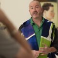 Organizada junto a la Fundación Botín y comisariada por Patricia Molins, el título de la muestra alude a dos constantes en su obra: el compás, símbolo del orden geométrico que estructura su pintura, y la máscara, metáfora de la tensión entre lo natural y lo artificial, lo animado y lo inerte.