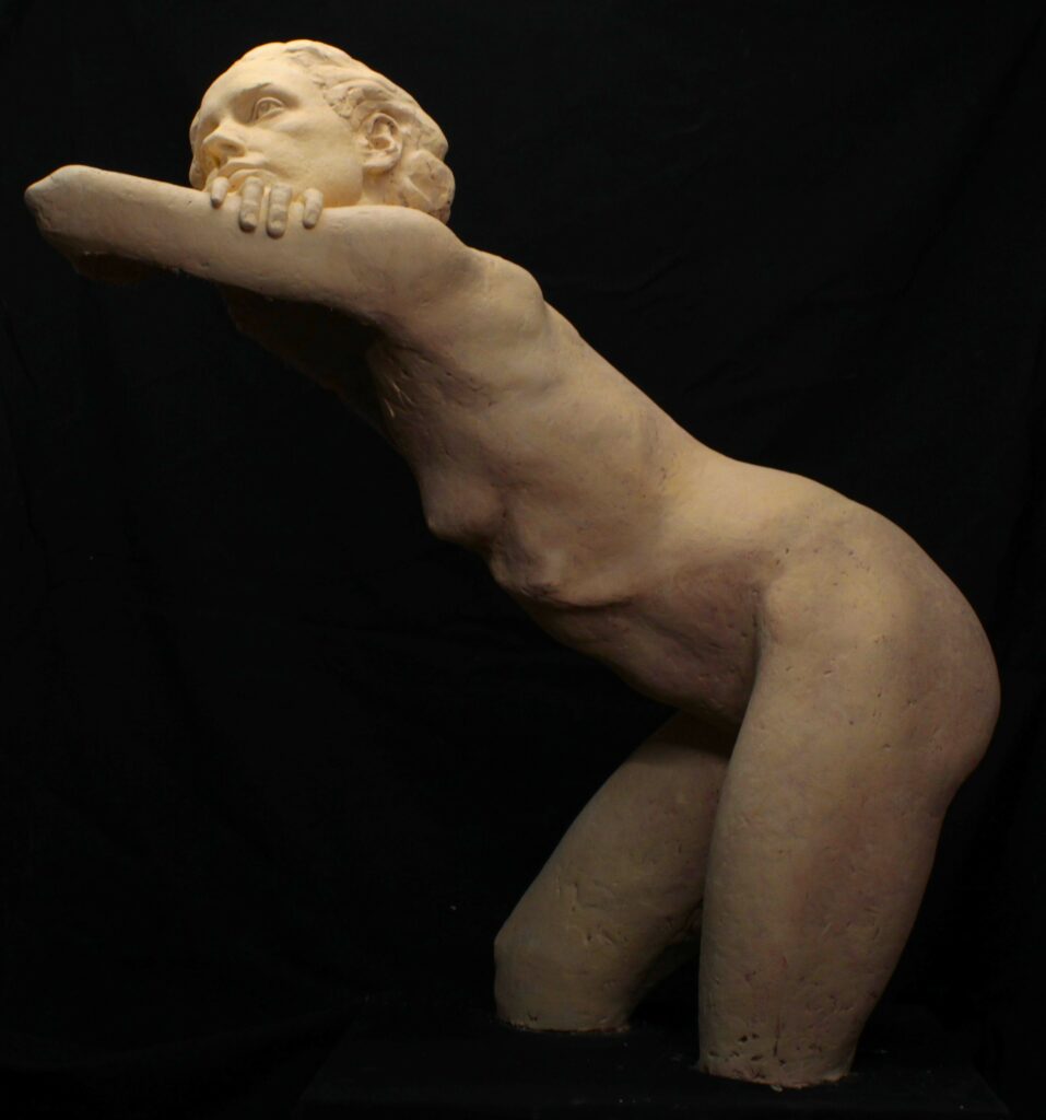 Marta Cano Delgado (Granada, 1998), con Soñadora (2025). Modelado en barro, reproducción en escayola, 93 × 83 × 44 cm.