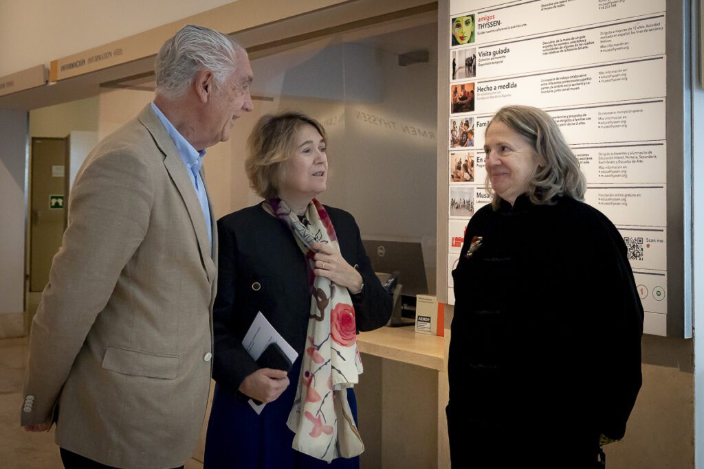 Evelio Acevedo, director gerente del Museo Nacional Thyssen-Bornemisza; Marta Rivera de la Cruz, delegada del Área de Gobierno de Cultura, Turismo y Deporte del Ayuntamiento de Madrid, y Estrella de Diego, comisaria de la exposición «Warhol, Pollock y otros espacios americanos». Fotografía: © Luis Domingo.