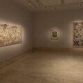 Con la vista puesta en el diálogo de espacios figurativos y abstractos, la siguiente sección, Rastros y vestigios, reúne piezas de Audrey Flack (1931-2024), Marisol Escobar (1930-2016), Anne Ryan (1889-1954), Perle Fine (1905-1988) y Robert Rauschenberg (1925-2008), además de Warhol y de Pollock, en las cuales se descubren figuras o sus rastros, que van construyendo un espacio a trozos, donde la figuración se va trastocando y camuflando.