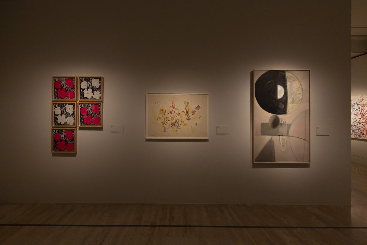 La muestra, que cuenta con la colaboración de la Comunidad de Madrid y el Ayuntamiento de Madrid, reúne más de cien obras, muchas nunca vistas en España. Proceden de una treintena de instituciones de Norteamérica y Europa y están firmadas por Warhol, Pollock y otros artistas como Lee Krasner, Helen Frankenthaler, Marisol Escobar, Sol LeWitt y Cy Twombly. Entre ellas se encuentran Marrón y plata I de Pollock, Express de Robert Rauschenberg y Sin título (verde sobre morado) de Mark Rothko, las tres de la Colección Thyssen-Bornemisza.