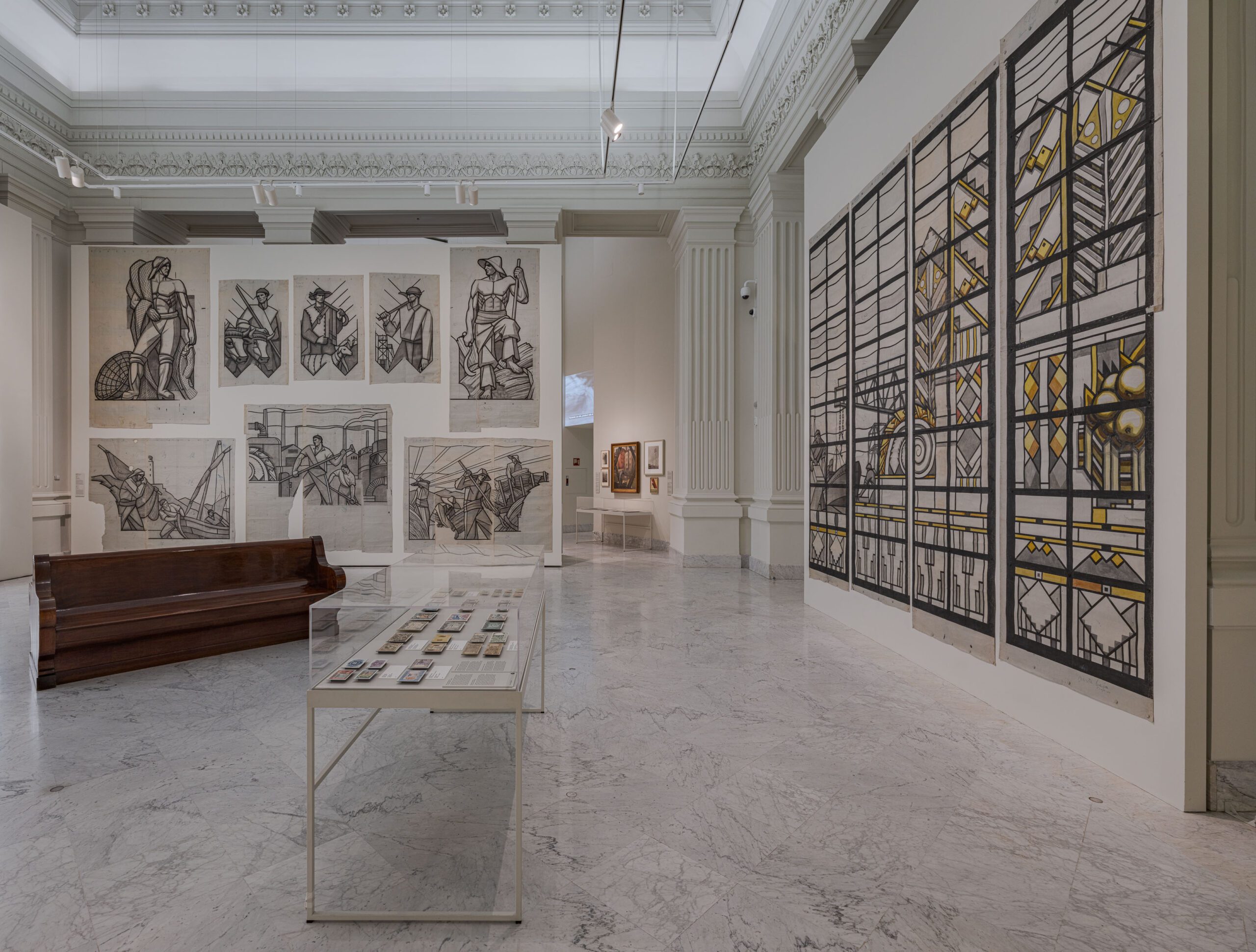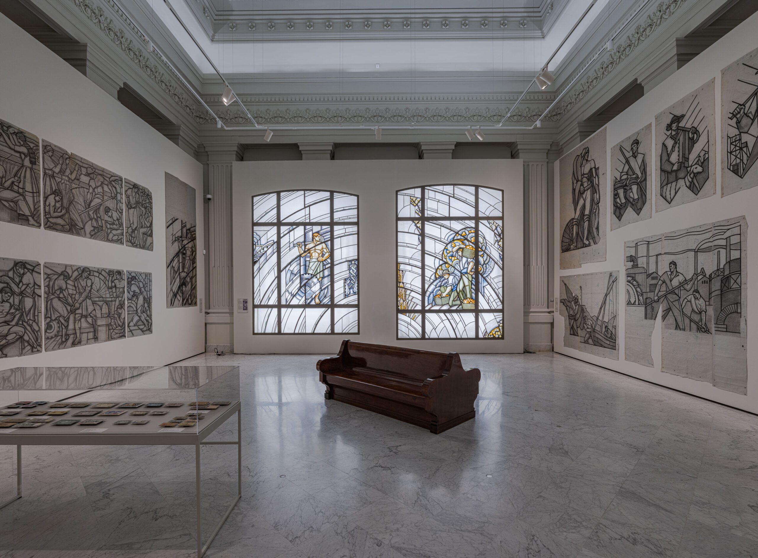 El art déco —con su orden geométrico, su sofisticación y su deuda con las vanguardias— actuó como vehículo de esa modernidad. Las vidrieras de Maumejean, que glorifican el trabajo agrícola, industrial y tecnológico, funcionan como un programa iconográfico que buscaba elevar la actividad productiva a símbolo nacional. Pero la exposición, lejos de limitarse a la celebración institucional, propone una lectura crítica: junto a la épica del progreso, aflora aquello que quedó fuera de cuadro —las duras condiciones laborales, la ausencia de mujeres creadoras y la dimensión política del arte como herramienta de legitimación.