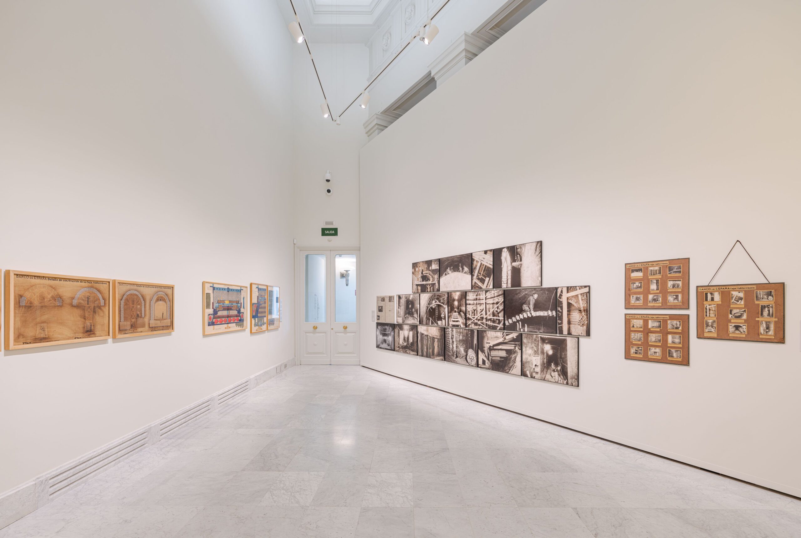 Otro ámbito baja hasta la Cámara del Oro, una arquitectura de precisión excavada a 35 metros de profundidad y concebida como santuario de seguridad. Planos, modelos y fotografías de archivo muestran tanto su diseño técnico como los rostros de quienes la hicieron posible. El último apartado, Una modernidad administrada, examina cómo materiales, mobiliario, iluminación y señalética componían un sistema visual coherente, pensado para proyectar solidez en tiempos de transformación.