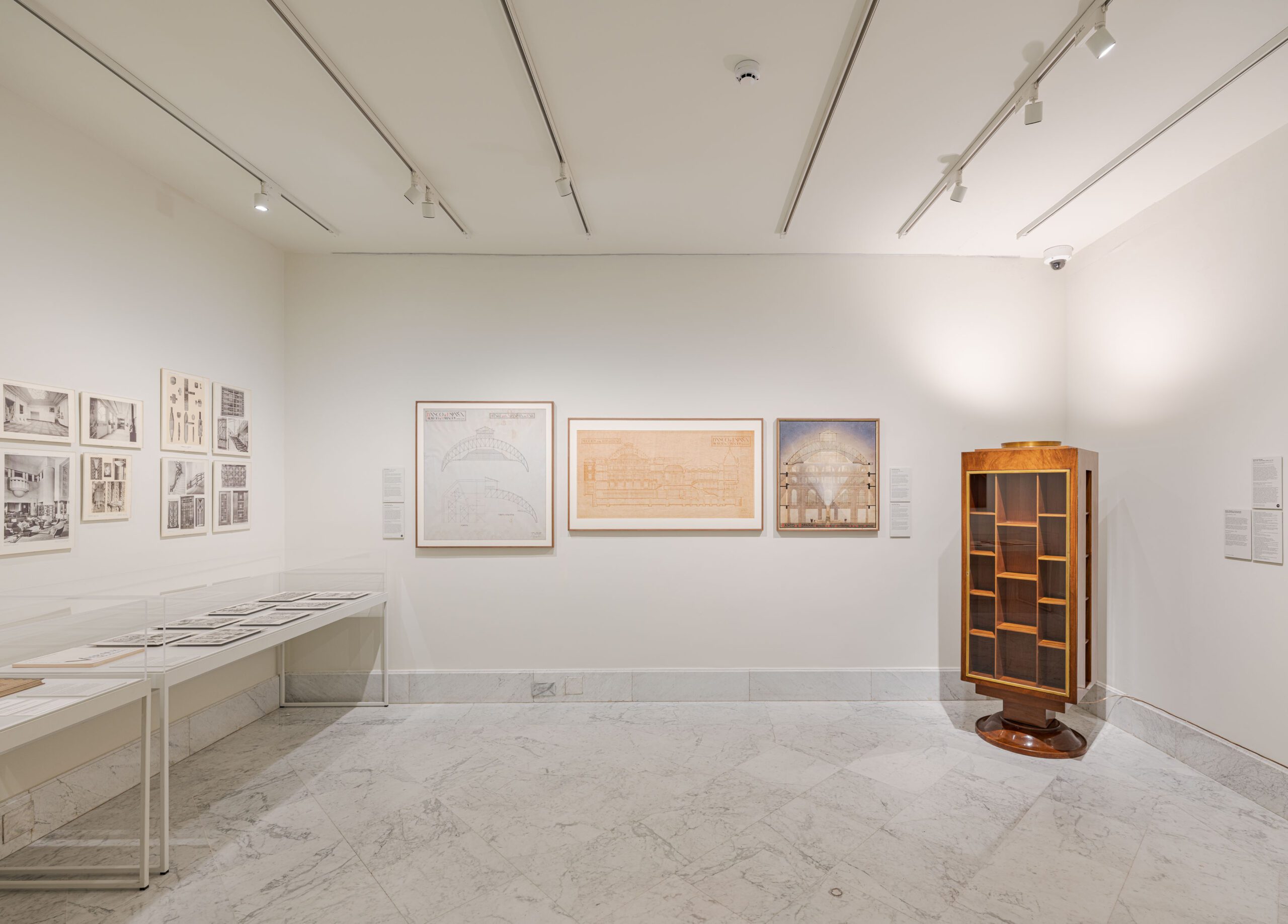 El recorrido parte de un momento en que la modernidad era tanto un horizonte como un campo de batalla. En la década de 1930, el arquitecto José Yárnoz Larrosa concibió una ampliación que mantenía la armonía exterior del edificio histórico diseñado por Eduardo de Adaro, pero transformaba su interior mediante una arquitectura más abierta, funcional y acorde con el nuevo lenguaje internacional. Acero, mármol, vidrio o latón se combinaron con técnicas de vanguardia para proyectar una imagen de progreso y estabilidad en un país sacudido por crisis y tensiones políticas.