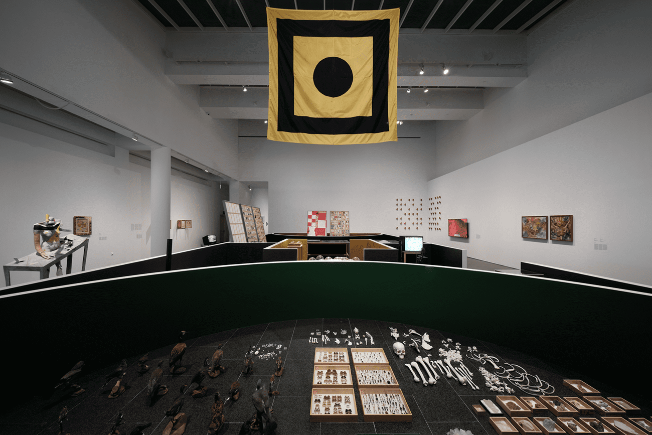 En otro de los ámbitos, la exposición invita a cuestionar las jerarquías heredadas de la modernidad occidental: el predominio de la razón sobre el instinto, del individuo sobre su entorno. Las obras de Matt Mullican, A.R. Penck o Zush exploran sistemas simbólicos y universos paralelos donde la lógica se trastoca y se abren fisuras para pensar otros modos de estar en el mundo.