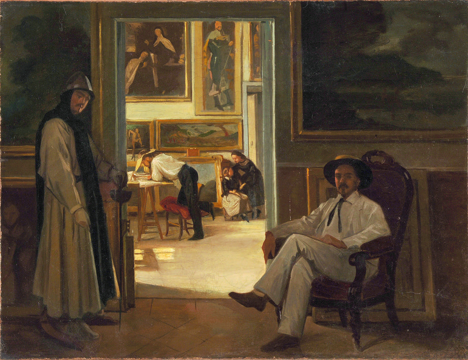 Sus cuadros de género y retratos mundanos, ejecutados con gran virtuosismo y una técnica impecable, si bien se correspondían con el gusto del momento, no gozaron de fortuna crítica en el relato de la modernidad artística. Esta muestra busca contextualizar y rescatar del olvido sus aportaciones y valores plásticos como un actor fundamental de la escena artística y de la sociedad más mundana e internacional de finales del siglo XIX y principios del XX.