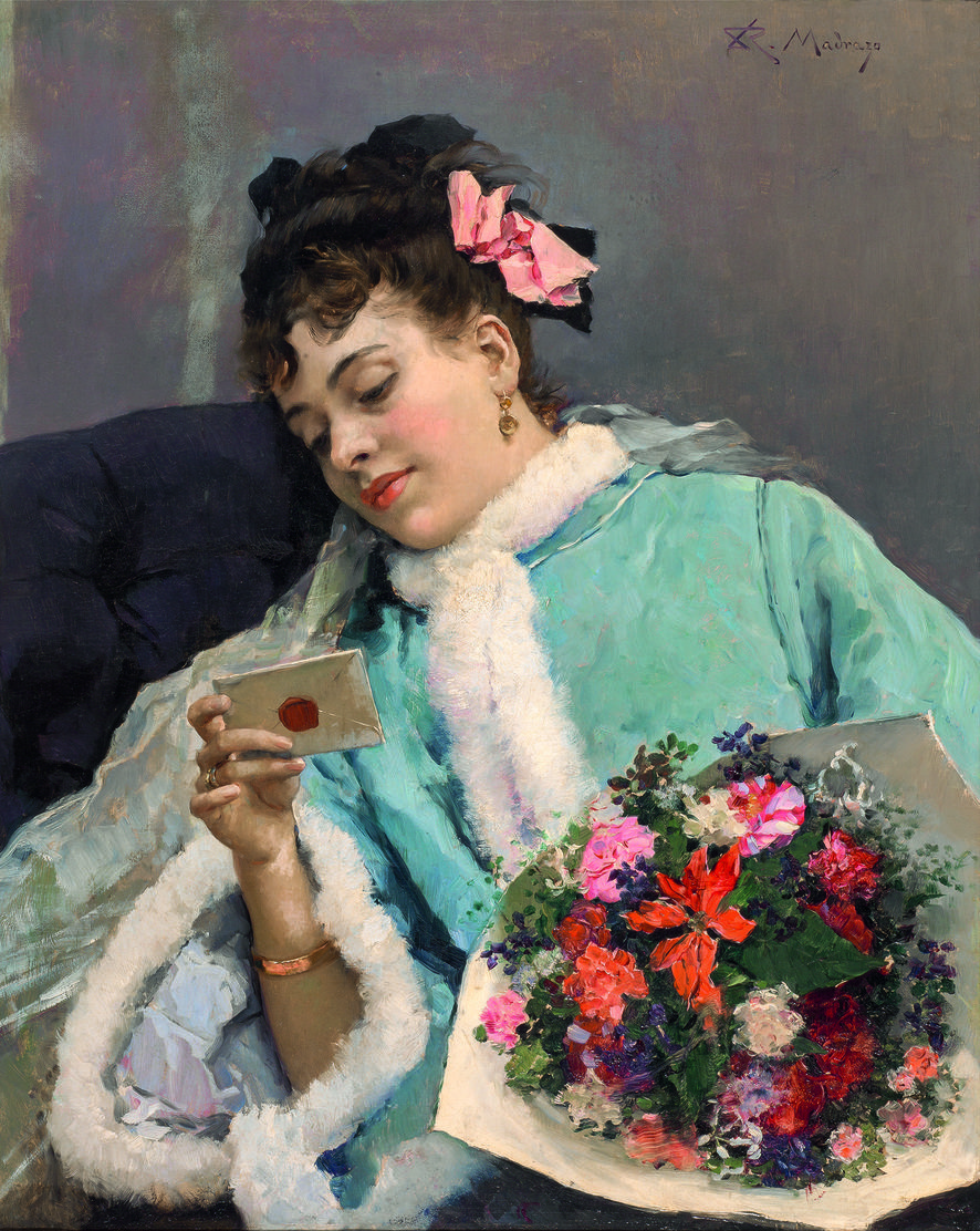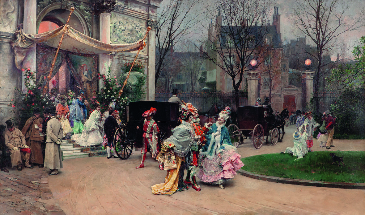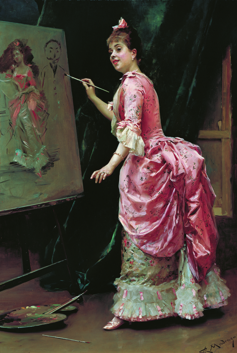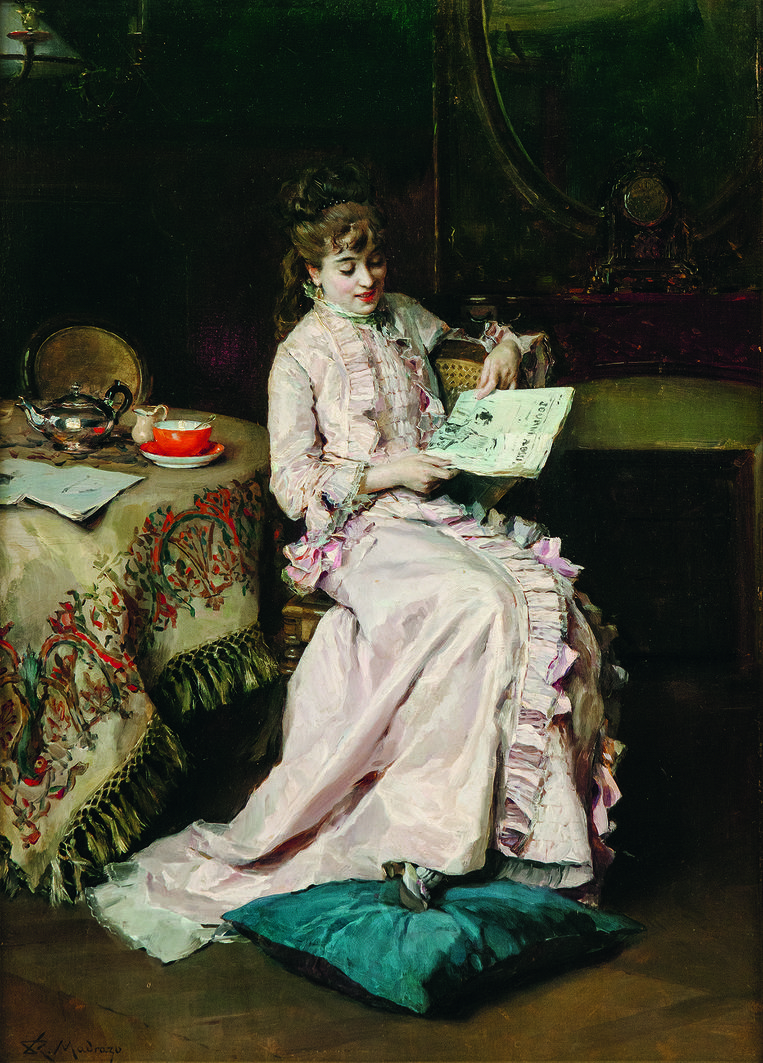 El deseo burgués de poseer obras que diesen testimonio del prestigio social de su dueño se tradujo en la proliferación de estas escenas. Ejecutadas habitualmente en pequeñas tablitas o tableautins, escenas como las toilettes, la representación de mujeres que leen o escriben, de bailes de máscaras o de personajes como Pierrot se convirtieron en motivos predilectos de esos preciados objetos. Junto con Mariano Fortuny y Eduardo Zamacois, Raimundo de Madrazo fue uno de los pintores que se especializaron en este tipo de obritas, tan del gusto del gran público en el tránsito del siglo XIX al XX.