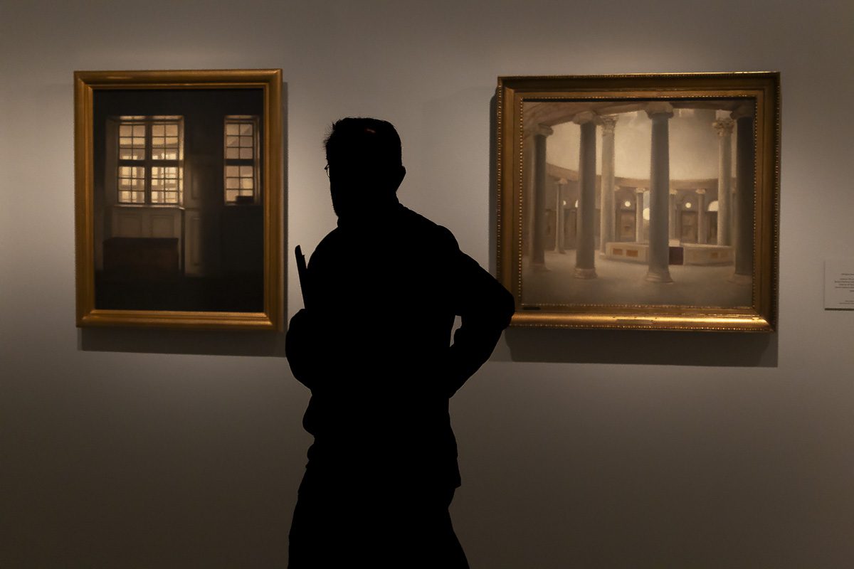 El subtítulo que acompaña a su gran retrospectiva, “el ojo que escucha”, define con precisión esa actitud. En sus lienzos la mirada funciona como un oído atento. La calma no es mera apariencia, es una vibración interna que conecta con su interés por la música y se traduce en composiciones donde la luz actúa como una nota sostenida. Cada interior, cada estancia apenas amueblada, responde a una depuración progresiva que elimina lo superfluo hasta dejar al descubierto la estructura esencial del espacio.