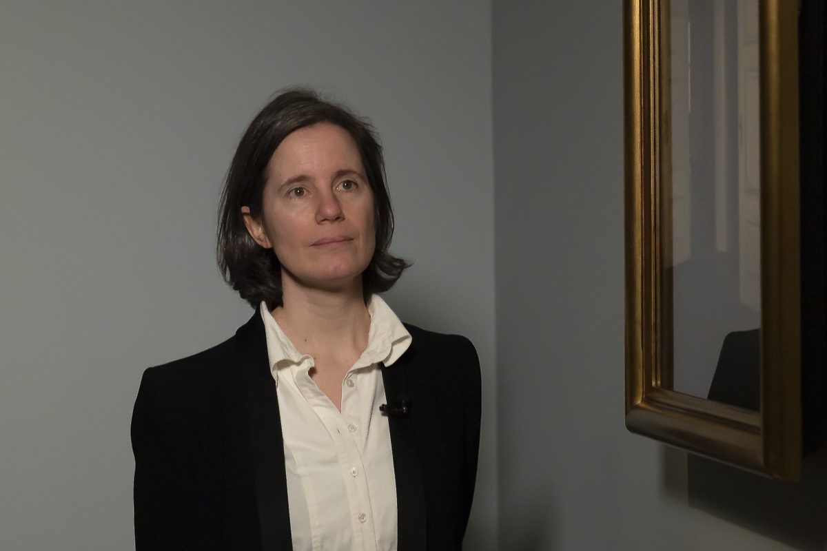 Clara Marcellán, comisaria de la exposición «Hammershøi. El ojo que escucha» en el Museo Nacional Thyssen-Bornemisza. Fotografía: © Luis Domingo.