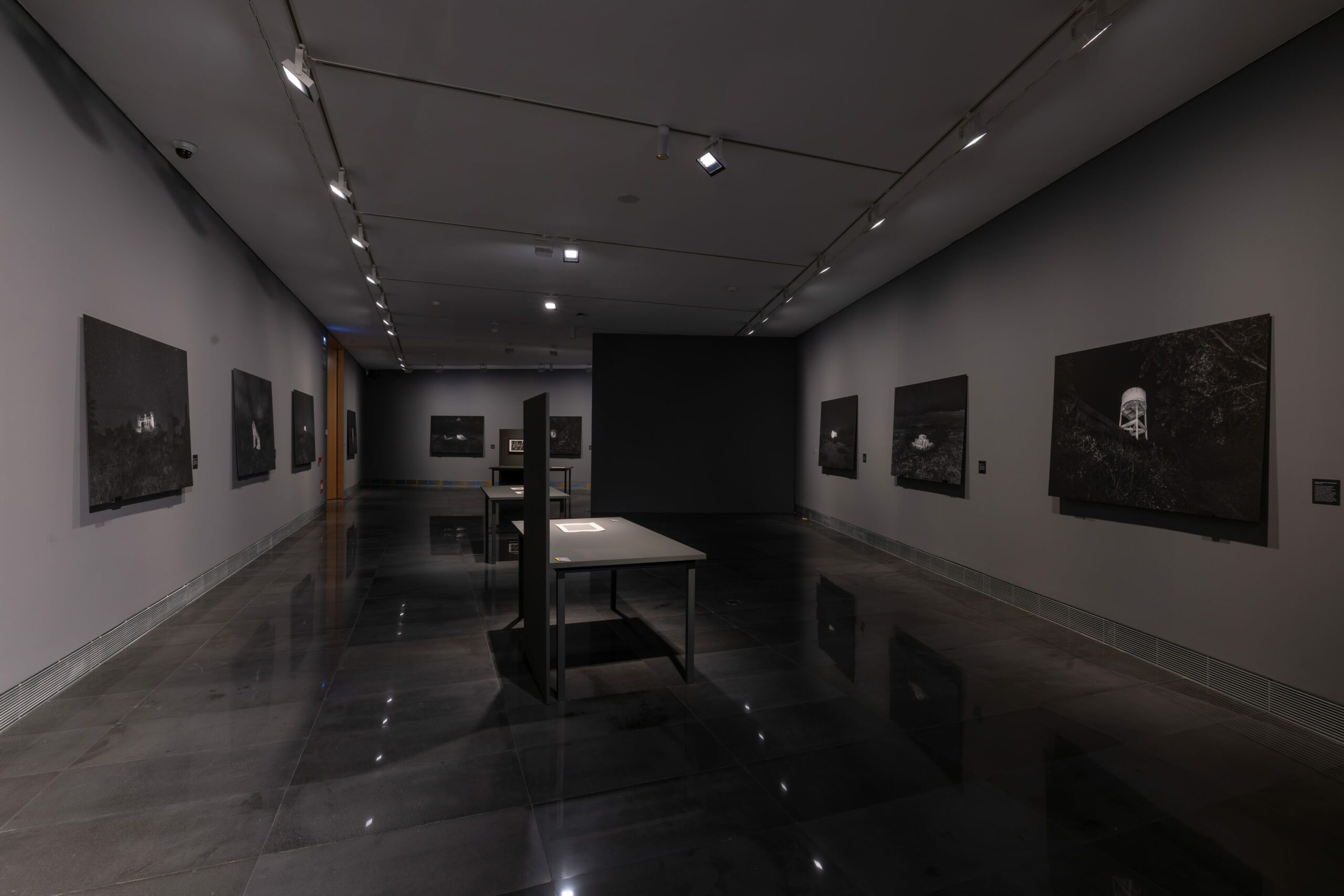 Sus fotografías están tomadas de noche. La oscuridad aísla el contexto y concentra la mirada en la arquitectura iluminada, convertida en una suerte de monumento provisional. Los restos del campo de Miranda de Ebro, los cimientos de San Cristóbal en Navarra o la desaparecida cárcel de Carabanchel aparecen suspendidos en paisajes desnudos, despojados de ruido contemporáneo. La luz no embellece, señala. La imagen interpela.