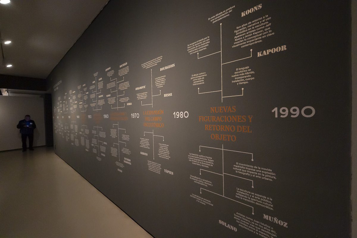 La exposición no se limita a mostrar obras. Propone herramientas para comprenderlas. Una cronología articula los acontecimientos sociopolíticos internacionales con la evolución de los movimientos artísticos en España. Se incluyen documentos audiovisuales procedentes de RTVE que acercan al visitante a los procesos creativos. Las citas de los propios artistas, distribuidas a lo largo del recorrido, permiten escuchar sus voces en primera persona. Un gran panel inicial reúne los retratos de los escultores, muchos obra de grandes fotógrafos, y establece un primer contacto humano antes de entrar en el discurso formal.