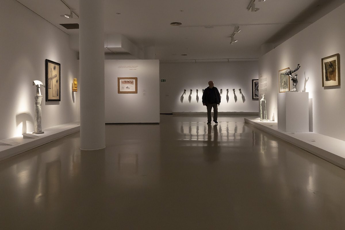 Al subir a la segunda planta cambia la atmósfera. El espacio se vuelve más sobrio, dominado por grises y blancos que acompañan el clima posterior a las guerras mundiales. Se habla de la muerte de las vanguardias, de un tiempo en que muchos artistas abandonan la figuración y buscan territorios más conceptuales. En paralelo al expresionismo abstracto estadounidense, en España emerge el informalismo. Martín Chirino explora una identidad marcada por el gesto y la materia.