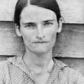 Walker Evans. Alabama Tenant Farmer Wife (Allie Mae Burroughs, Hale County, Alabama), 1936 [Mujer de un arrendatario agrícola de Alabama (Allie Mae Burroughs, condado de Hale, Alabama)] Copia de época de plata en gelatina. Colección particular, San Francisco. © Walker Evans Archive, The Metropolitan Museum of Art.