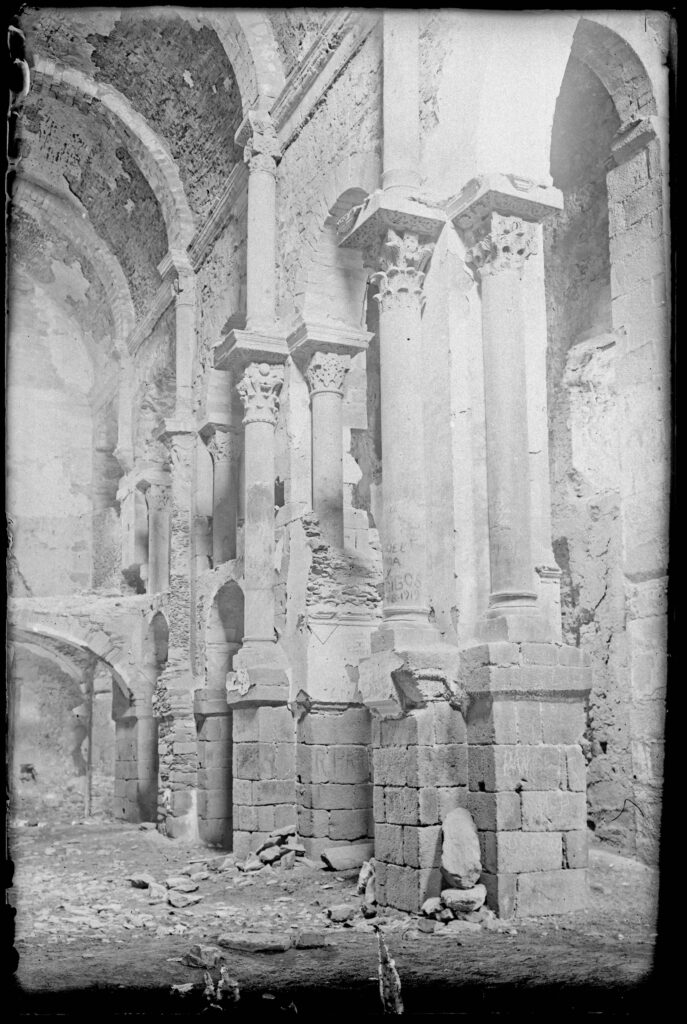 Vista del interior de la iglesia de San Pere de Rodes con ruinas en el suelo (1925-1939). Arxiu de l’Institut d’Estudis Catalans, Fons Joan Subias i Galter.