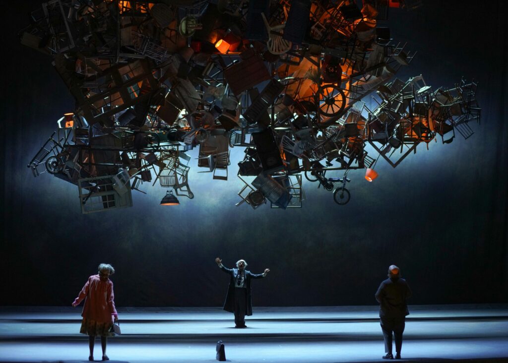 El director de escena Laurent Pelly, que dirige su séptima producción en el Teatro Real, después de La hija del regimiento (2014), Hansel y Gretel (2015), El gallo de oro (2017), Falstaff (2019), El turco en Italia (2023) y Los maestros cantores de Núremberg (2024), se aleja del costumbrismo, situando la trama en el mundo imaginario de la protagonista ─escenografía de Caroline Ginet─, en el que los personajes evocan los dibujos animados checos, en una graciosa y divertida sincronía con la música, que explora la comicidad e ingenuidad de la obra.