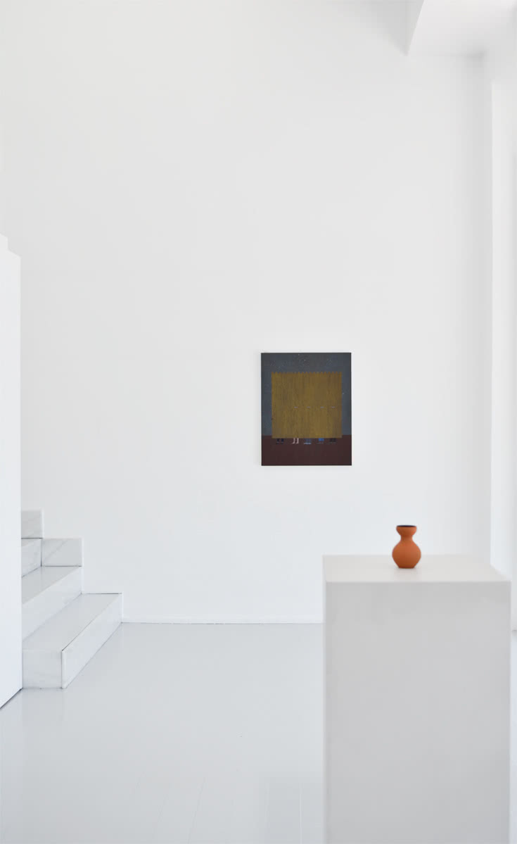 El título de la muestra surge del verbo ‘rumiar’, como sinónimo de meditar, reflexionar o tramar. El trabajo de Lajarín tiene la virtud de atrapar al espectador. Son escenas extremadamente estáticas que, sin embargo, se sabe que son el resultado de un impulso reiterativo, de una acción sosegada pero continua. El artista es el propio rumiante, y sus pinturas son los infructuosos intentos de digerir la realidad, de asimilar la existencia, en clave de humor pero con una seriedad irrefutable.