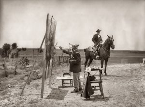 Venancio Gombau. Pintando Charro a caballo, en la finca Villar de los Álamos. Provincia de Salamanca, junio de 1912.
