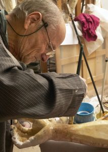 Antonio López trabajando en la escayola de 'Hombre tumbado'.