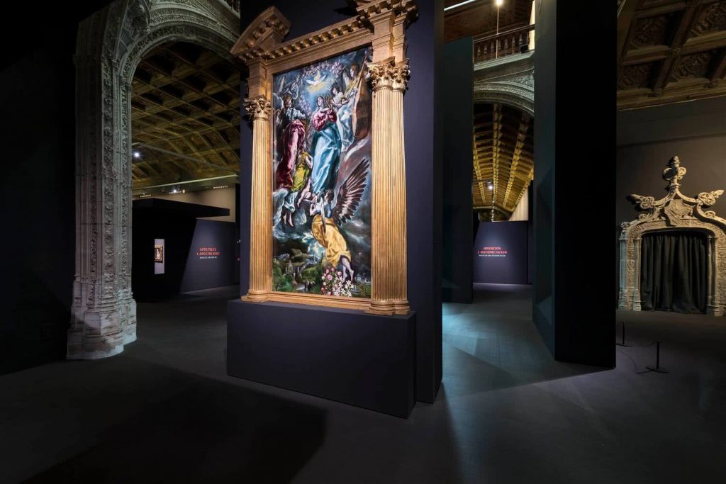 Junto al Museo de Santa Cruz [1], centro de esta gran exposición, El Greco: Arte y Oficio cuenta con otras dos sedes toledanas: la Sacristía [2] de la Catedral y el Museo del Greco [3]. En ambos lugares se exhiben sendos Apostolados del artista, que se unen durante tres meses a los dos que se exhiben en el Museo de Santa Cruz: el del Marqués de San Feliz, del Museo Nacional de Escultura de Valladolid –y que llega desde Oviedo–, y las obras que se conservan del Apostolado de Almadrones (Guadalajara), dispersas tras la Guerra Civil.