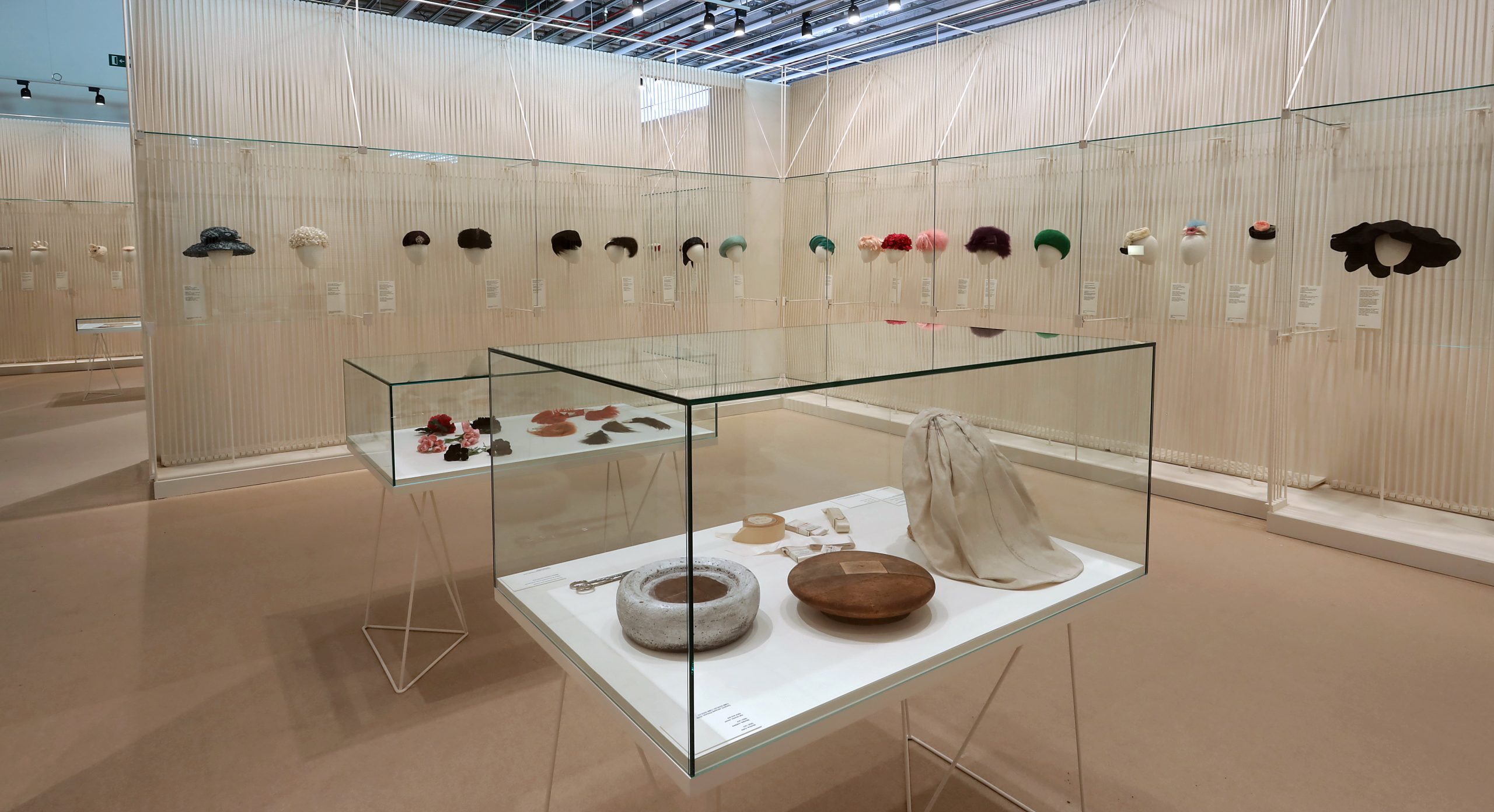 Esta es la primera muestra internacional centrada en los sombreros y tocados que se crearon en los departamentos de sombrerería de la casa de alta costura en París y en Madrid desde finales de los años 30 hasta su cierre en 1968.