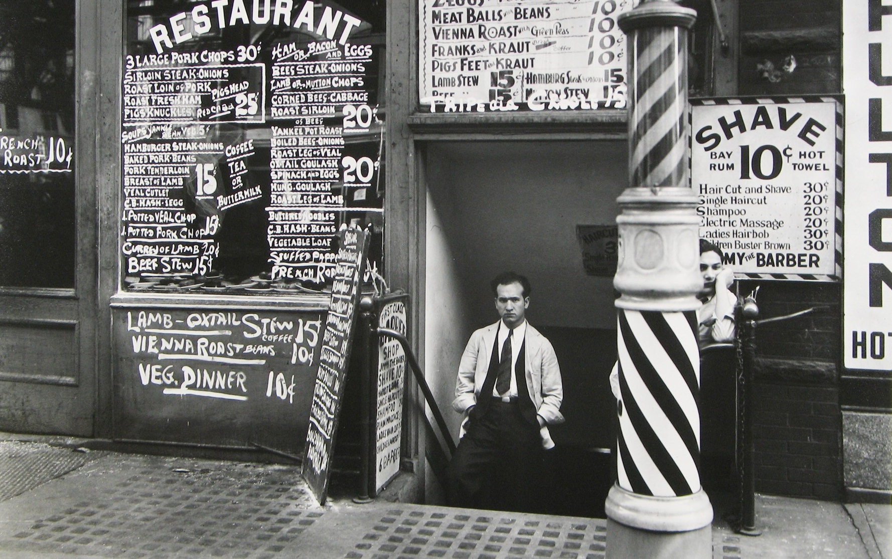 En Ciudades, segundo grupo de fotografías, está reunido el deslumbrante retrato que Abbott hace de Nueva York durante la década de 1930. Ante su objetivo, la ciudad se convierte en un ser vivo, en un extraordinario personaje que se descubre ante sus visitantes con sus impactantes rascacielos, el bullicio y sus escaparates. Desarrolla este proyecto de forma independiente hasta que en 1935 logra financiarlo con la ayuda del Federal Art Project. Estas imágenes fueron publicadas en 1939 con el título Changing New York, logrando un gran éxito de crítica y ventas.