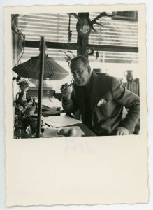 Camilo José Cela fumando pipa en su estudio de la casa de José Villalonga, 1964.