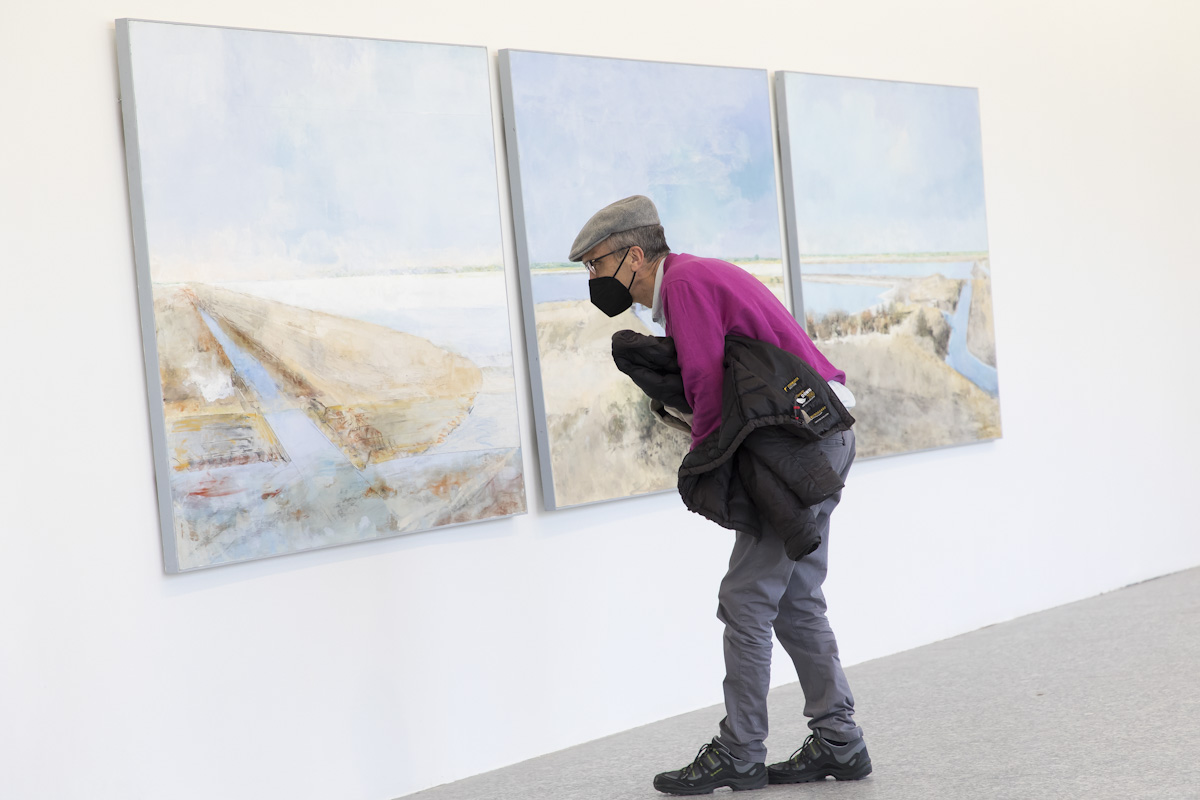 Concebida por el Museo Patio Herreriano de Valladolid y el Centro Andaluz de Arte Contemporáneo –de hecho sus directores son sus comisarios, Javier Hontoria y Juan Antonio Álvarez Reyes, y ya pasó por ambos museos–, Laffón presenta en La sal una mirada atenta a las salinas de Bonanza, en Sanlúcar de Barrameda. La desembocadura del Guadalquivir, entre Cádiz y Huelva, y con el Coto de Doñana como motivo y testigo privilegiado del hecho pictórico, es el lugar desde el que la artista viene desplegando su pintura más suelta, libre y ambiciosa.