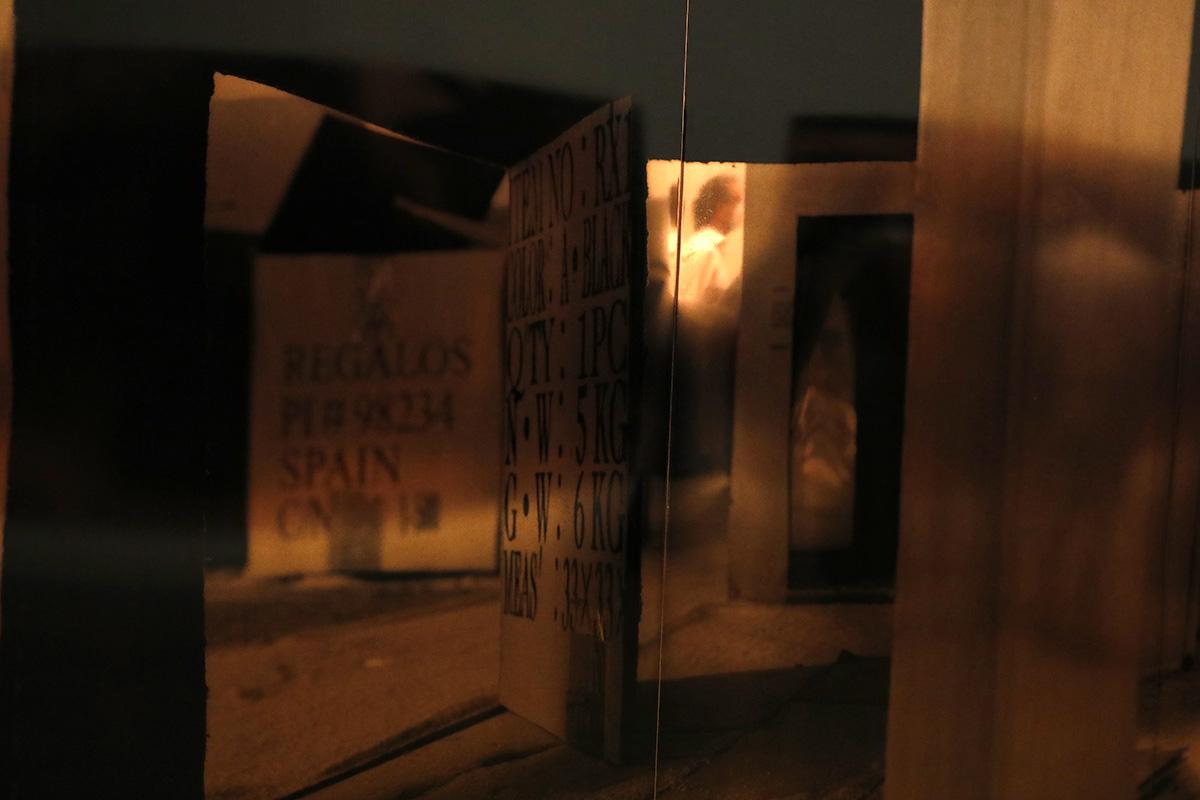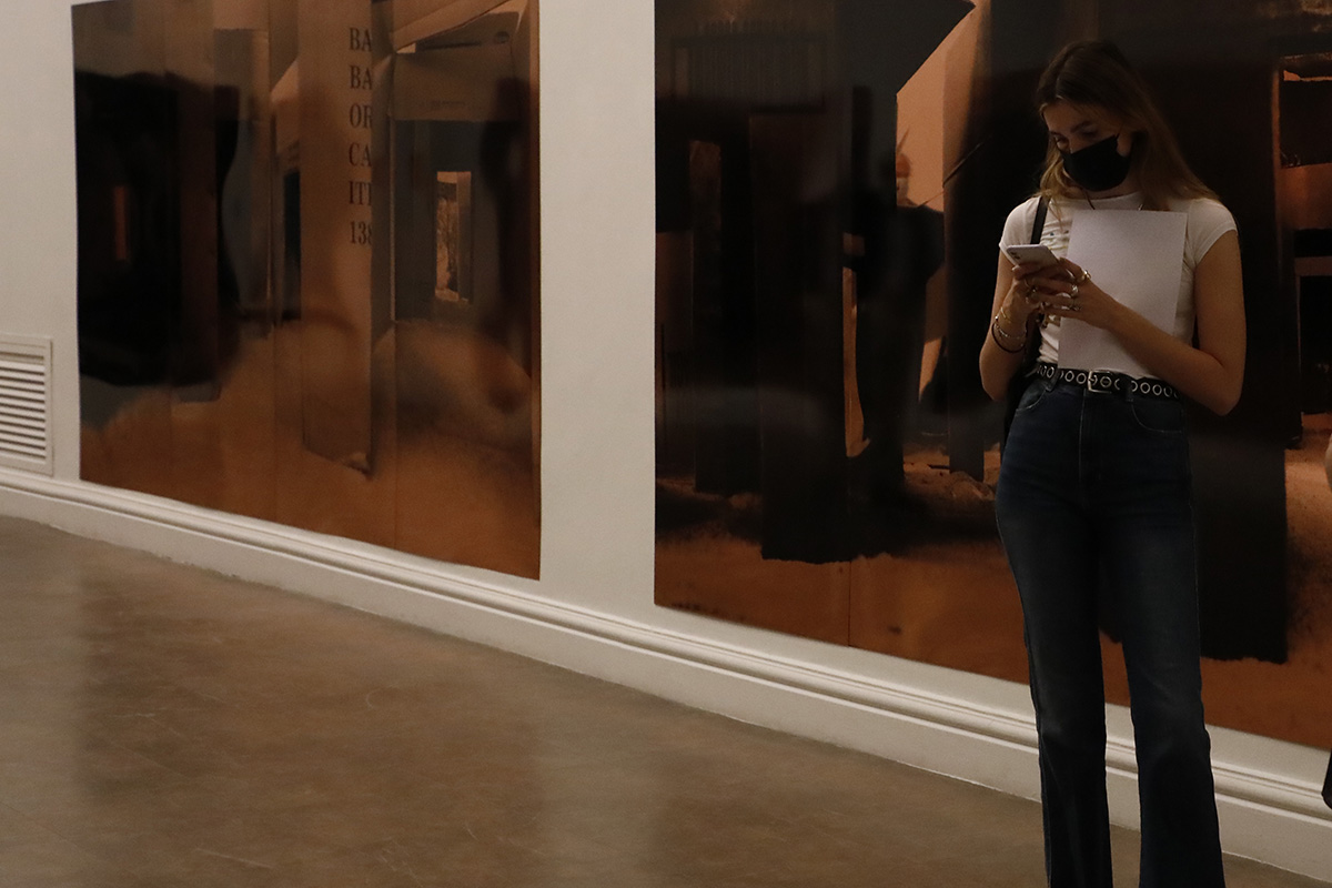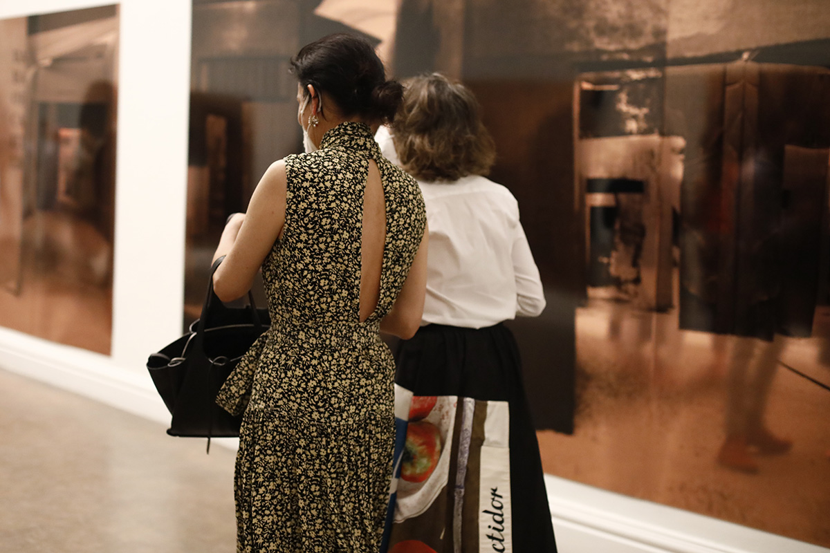 La dimensión de las serigrafías en cobre de Iglesias contribuye a la estrategia de transferencia de la escultura al territorio de la arquitectura, a la difusión de los límites entre los géneros convencionales y a la construcción de escenografías mediante reflejos. Son evidentes las posibilidades de reflexión y refracción de este metal, de modo que la imagen serigráfica que contiene se diluye en el espacio y se proyecta en él.