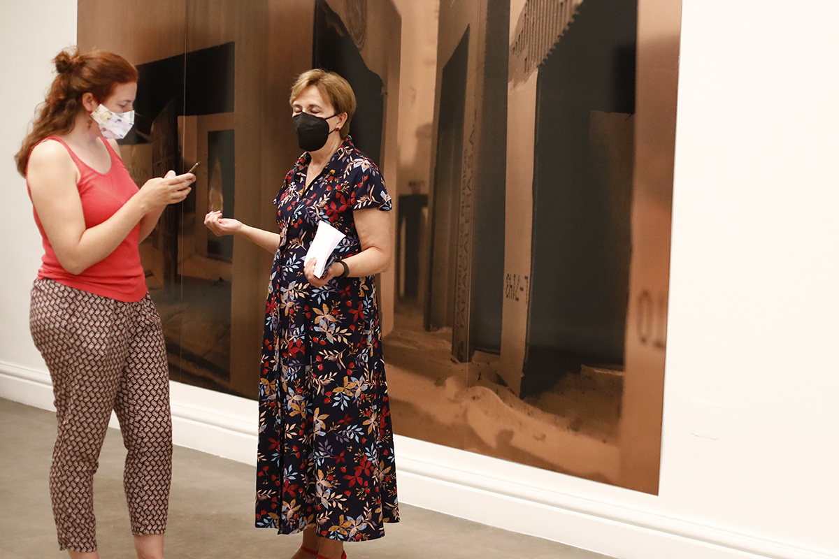 Los límites del grabado convencional desaparecen en su serie en cobre, creando composiciones de concepto marcadamente arquitectónico que dialogan con el espacio. Utilizando este metal como soporte de sus serigrafías de gran formato éste deviene en protagonista, en receptor de la mirada. Sus obras, de grandes dimensiones, transforman el lugar ocupándolo todo, revistiéndolo y transformando el ámbito expositivo en un espacio diferente.
