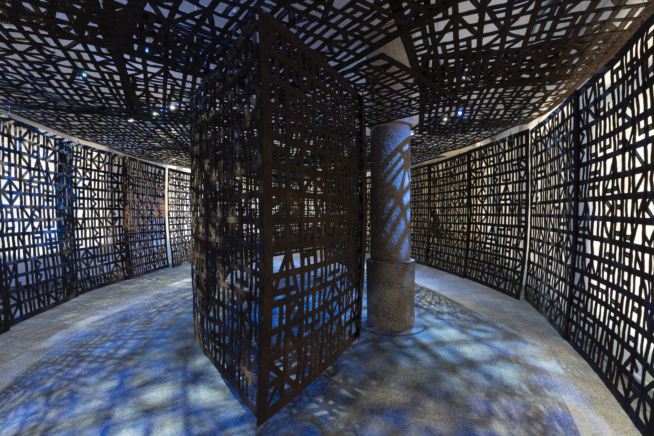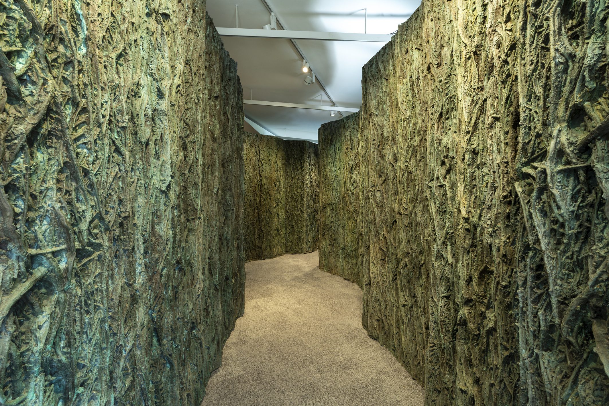 Cristina Iglesias ha creado entornos inmersivos que unen disciplinas como la arquitectura, la ingeniería o la literatura con elementos naturales e influencias culturales específicas del lugar para el que han sido concebidos. A partir de un repertorio que combina formas ficticias y naturales, sus obras incluyen desde pabellones suspendidos y celosías hasta pasillos, laberintos y muros impregnados de textos, así como obra gráfica y dibujos realizados en soportes de materiales variados. De este modo, redefine el espacio de forma poética, borra las líneas entre interior y exterior, y entre lo orgánico y lo artificial. A menudo, sus instalaciones evocan la memoria del paisaje, hacen referencia a la geología y al subsuelo, y crean experiencias sensoriales inesperadas en el espectador.