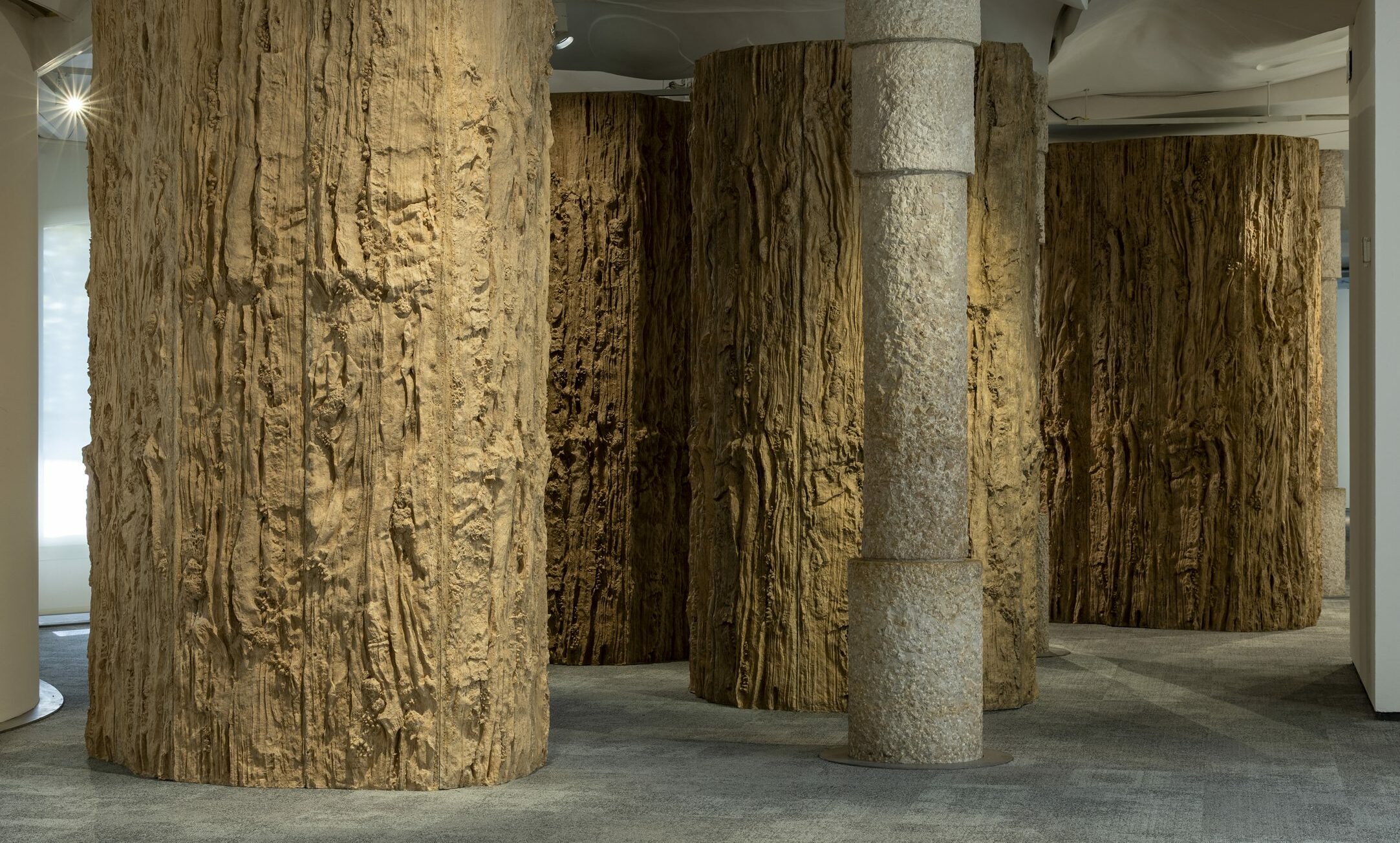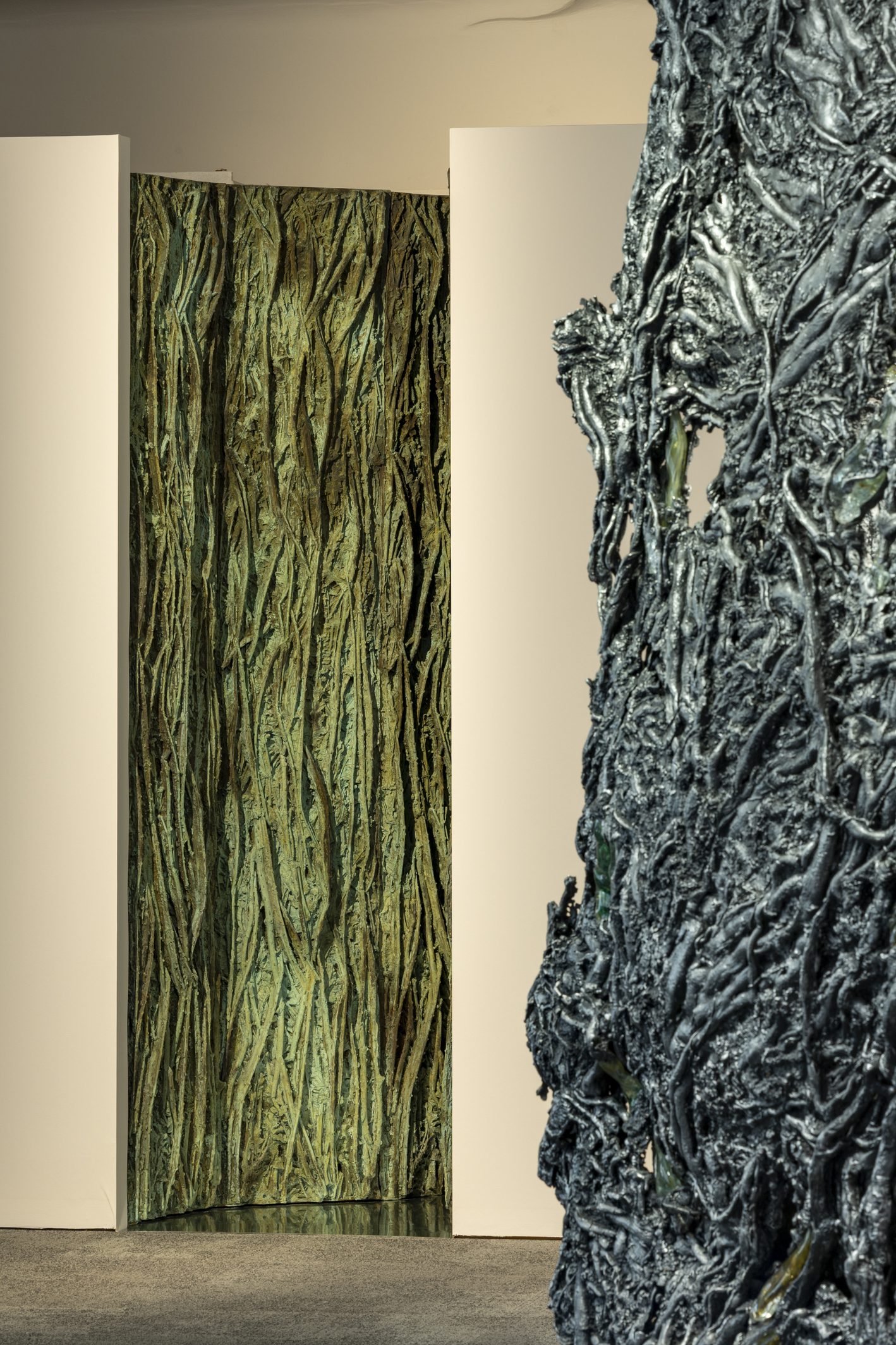 Una de estas obras, Bosque mineral (2025), ha sido creada ex profeso para la planta noble de La Pedrera, y otra de grandes dimensiones, Vers la terre (Variación II) (2011), ha sido adaptada para el patio del Passeig de Gràcia, que da la bienvenida a los visitantes que entran en la Casa Milà.