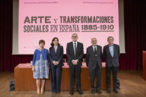 De izquierda a derecha: Marina Chinchilla, Directora Adjunta de Administración del Museo Nacional del Prado; Silvia Churruca, Directora de Relaciones Institucionales de la Fundación BBVA; Miguel Falomir, Director del Museo Nacional del Prado; Javier Solana, Presidente del Real Patronato del Museo Nacional del Prado, y Javier Barón, comisario de la exposición. Foto © Museo Nacional del Prado.