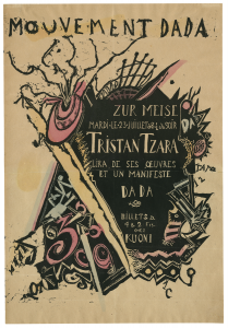 Marcel Janco: Mouvement DADA. Zur Meise, Tristan Tzara lira de ses oeuvres et un manifeste DADA, [Zúrich], [1918].