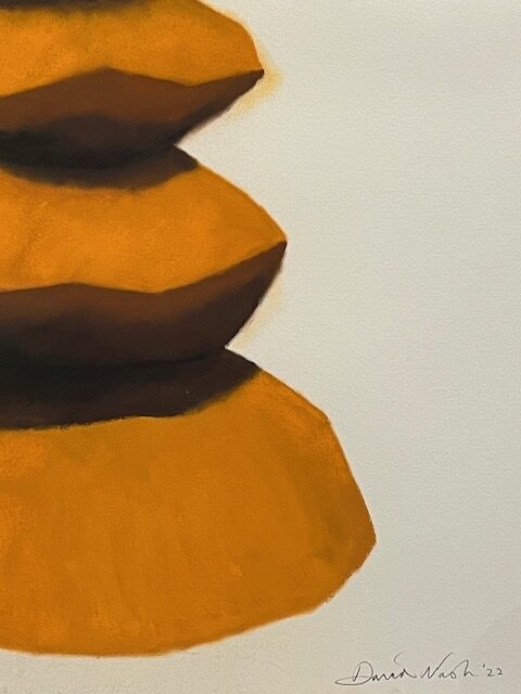 El dibujo, el último gran protagonista de la muestra, ha sido siempre un elemento destacado en la producción de David Nash y con él documenta, además, su proceso creativo. Su técnica consiste en aplicar el pigmento crudo directamente sobre el papel, incorporando halos de color alrededor de la forma principal. Si bien predomina el color negro carbón, en ocasiones incorpora otros tonos de la naturaleza, que aluden por ejemplo al cambio de color de las hojas de roble según el mes o la estación del año; como ocurre en Oak Leaves Through May, donde pasa del naranja al amarillo y al verde brillante.