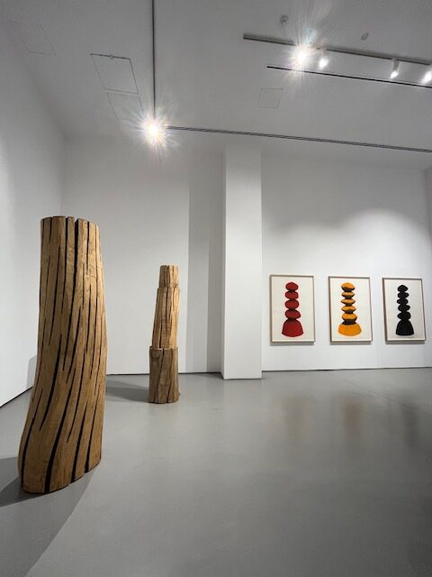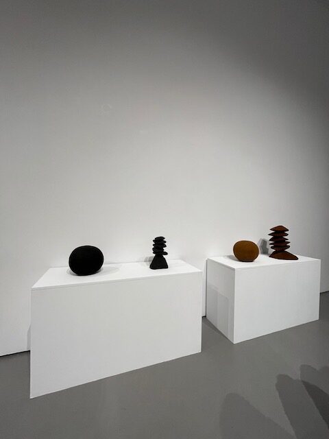 La exposición también presenta seis esculturas en bronce, un material que Nash empezó a trabajar a partir de la década de 1990 y cuyo tratamiento alude de nuevo a la madera, como ocurre con King and Queen III, Red column o Black Cairn. El empleo de este material vino motivado por la voluntad del artista de preservar sus formas para la posteridad, sin interferir en las condiciones físicas de los objetos de madera originales. También aprecia de este material su capacidad de transformación al ser calentado y fundido.