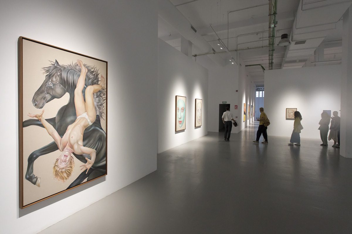 Dis Berlin (Soria, 1959) se estrena en este espacio con Poemas Soñados, exposición fruto de la colaboración con la Galería Guillermo de Osma. En esta muestra recorre sus últimos veinte años de trabajo y regresa a la figuración con la que tanto reconocimiento obtuvo. 10 obras de distintos formatos que recorren sus obsesiones y temáticas principales: la mujer y su cuerpo, la tradición clásica, el cielo y la eterna transformación de los objetos. Bajo su claridad, bajo su disposición ordenada, sus obras son como plácidas islas, apoyadas en una sólida superposición de imágenes y cruzadas por una compleja red de percepciones.