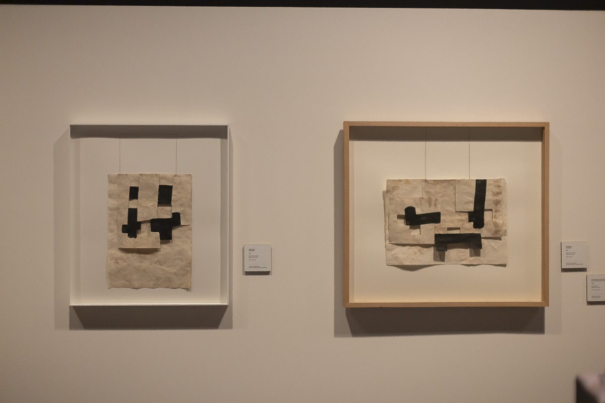 A esta sección se suman collages de papeles rasgados y la serie Gravitaciones, desarrollada desde 1985. En ellas, los recortes suspendidos generan una tercera dimensión inesperada. El plano se convierte en campo expandido. La levedad del papel alcanza una potencia escultórica.