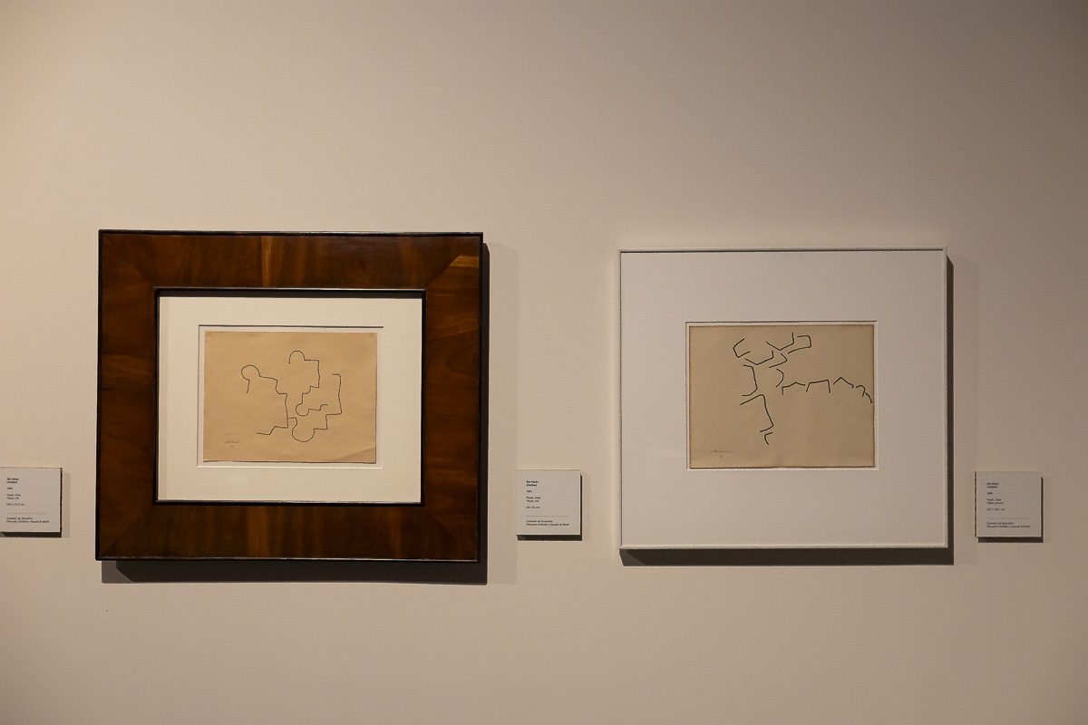 Uno de los aciertos de la muestra reside en subrayar la importancia de la obra sobre papel. En el caso de Chillida, los dibujos no son estudios previos ni simples apuntes. Constituyen un espacio autónomo de pensamiento. Bocetos como el destinado a la plaza de los Fueros de Vitoria o trabajos como Jaula de libertad evidencian la misma intensidad conceptual que sus esculturas. Tinta, carbón y sanguina trazan geometrías que dialogan con el volumen, mientras las manos abiertas o entrelazadas exploran la relación entre gesto y espacio. En los retratos dedicados a su esposa e hijos, así como en algunos autorretratos, emerge una dimensión más íntima sin abandonar la profundidad expresiva.