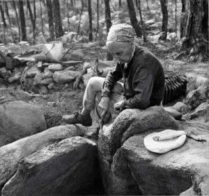 Vera Leisner durante la excavación de una tumba megalítica en Portugal (Foto Juan Jiménez Salmerón, 1969).